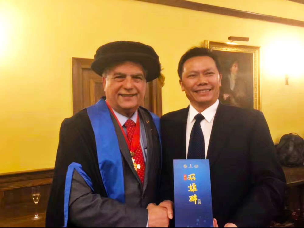 雙雄醉健康酒業(yè)總經(jīng)理鄭書軍出訪英國(guó),與劍橋大學(xué)榮譽(yù)校長(zhǎng)、劍橋前市長(zhǎng)合影