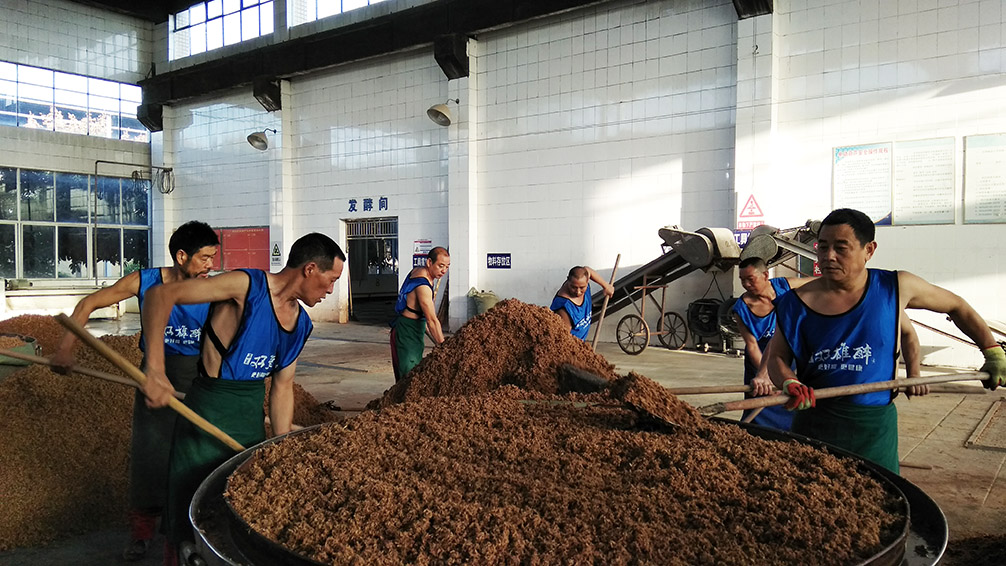 上午,團(tuán)隊(duì)來(lái)到石花酒業(yè)產(chǎn)業(yè)園,在工作人員的引導(dǎo)下,一進(jìn)入釀酒車(chē)間,VIP客戶(hù)們就被熱鬧的生產(chǎn)場(chǎng)景所吸引,身形矯健的工人師傅們正揮舞著生產(chǎn)工具,干勁十足,動(dòng)作優(yōu)美,整個(gè)過(guò)程精心釀制,獨(dú)具匠心,雙雄醉健康白酒就在此釀造。工作人員介紹,石花霸王醉和石花雙雄醉基酒都在這里高品質(zhì)釀造,所以說(shuō),石花雙雄醉健康酒與霸王醉同宗同源,恰如親生兄弟,血統(tǒng)高貴,氣質(zhì)不凡。在釀造雙雄醉酒的過(guò)程中,在傳統(tǒng)地缸發(fā)酵、大曲清香工藝基礎(chǔ)上,融合了黑小麥、葛根素、羅漢果等對(duì)人體有益的多種原材料,酒體中具有SOD、葛根素等豐富的健康因子,口感與飲后反應(yīng)獲得普遍贊譽(yù)。