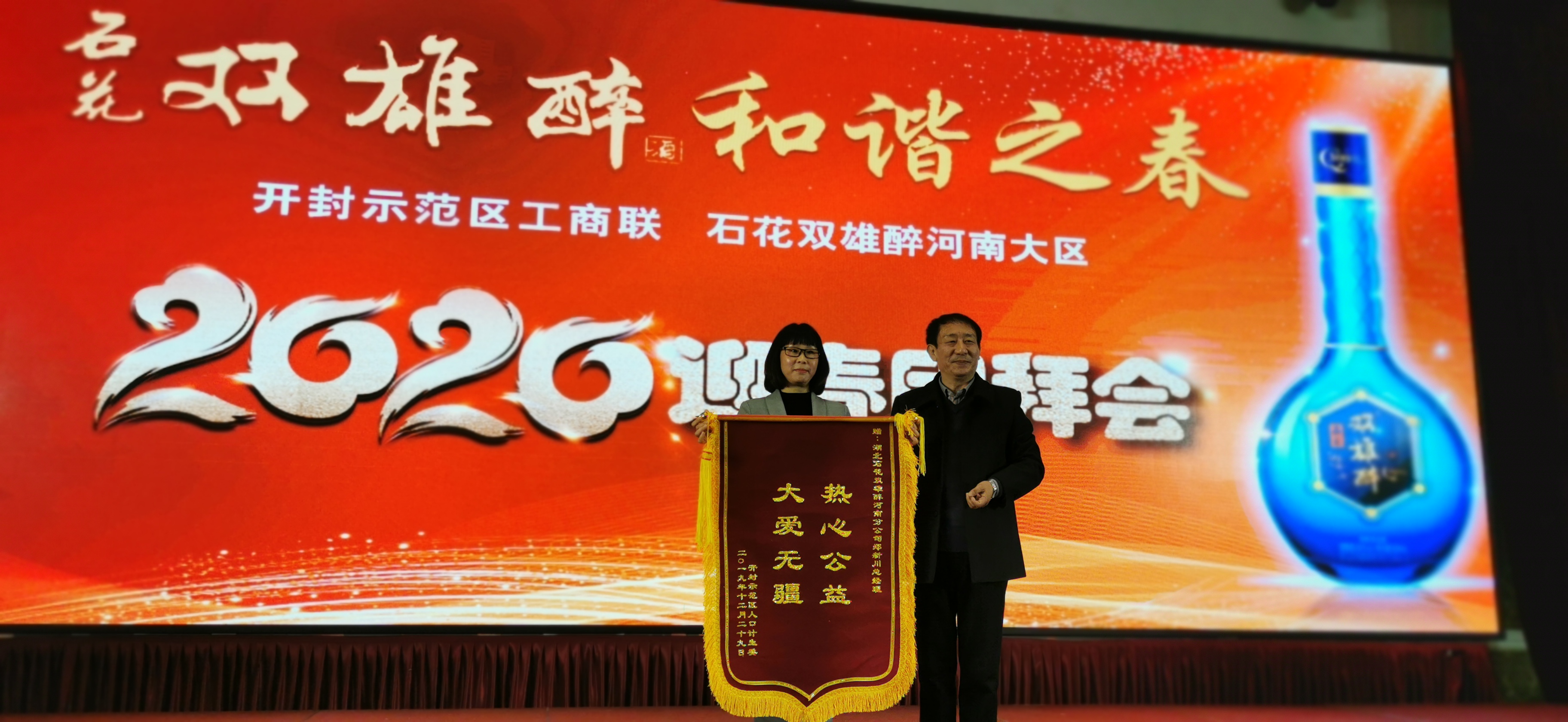 元月2日,由開封市工商聯(lián)(總商會)、湖北雙雄醉健康酒業(yè)共同舉辦的“石花雙雄醉酒和諧之春”2020迎春團拜會,在開封開元酒店舉行,來自開封市市人大、市政協(xié)、市總工會、市廣電、工商聯(lián)各分會會員單位、企業(yè)家、湖北雙雄醉各核心合作伙伴等單位近300人到會,共話情誼、共迎新春。湖北雙雄醉健康酒業(yè)總經(jīng)理鄭書軍帶隊到會祝賀。