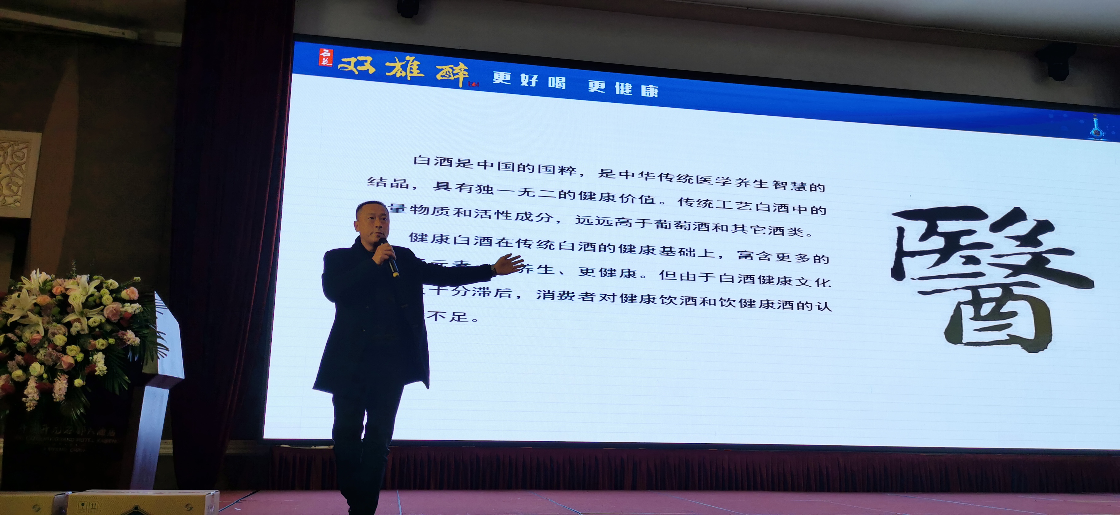 湖北雙雄醉健康酒業(yè)省外大區(qū)總監(jiān)劉健在會上作了“雙雄醉品牌密碼”解讀,他全面介紹了雙雄醉酒“雙雄之根、雙雄研發(fā)、雙雄戰(zhàn)略”,剖析了雙雄醉酒獨特的健康原料、傳統(tǒng)生態(tài)釀造工藝、豐富健康活性因子等核心差異化優(yōu)勢,回答了“更好品質(zhì)、更爽體驗、更多健康”的雙雄醉品牌核心密碼。