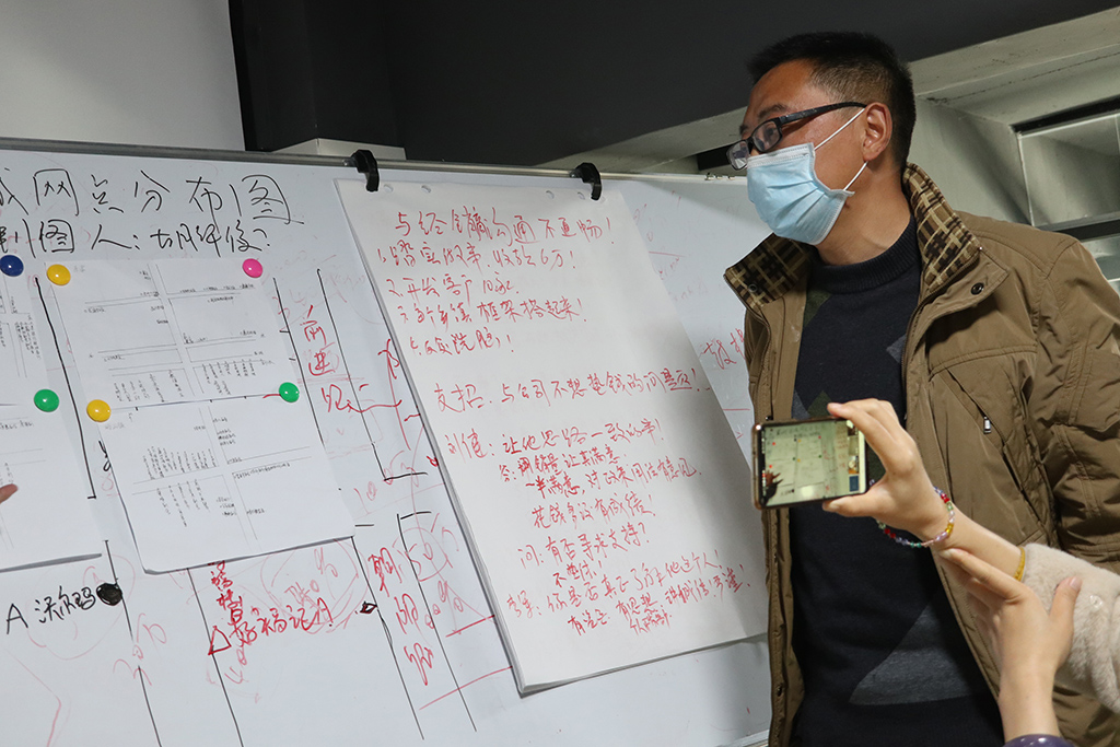 3月23日,銷售總監(jiān)胡華俊就區(qū)域網(wǎng)格化管理之“兩圖一表”如何操作進行了詳細(xì)培訓(xùn),安排新員工進行網(wǎng)格化管理實戰(zhàn)演練。幾天來,雖然天氣陰晴不定,雨雪不斷,依然擋不住團隊的熱情,大家通過掃街的方式,在公司的指導(dǎo)下,按時完成“兩圖一表”的繪制和拜訪路線的劃分。分享展示會上,大家根據(jù)實際拜訪的情況,講述各區(qū)域繪制地圖的過程及區(qū)塊化管理的辦法。部分參加網(wǎng)絡(luò)會議的新員工通過網(wǎng)絡(luò)展示成果。
