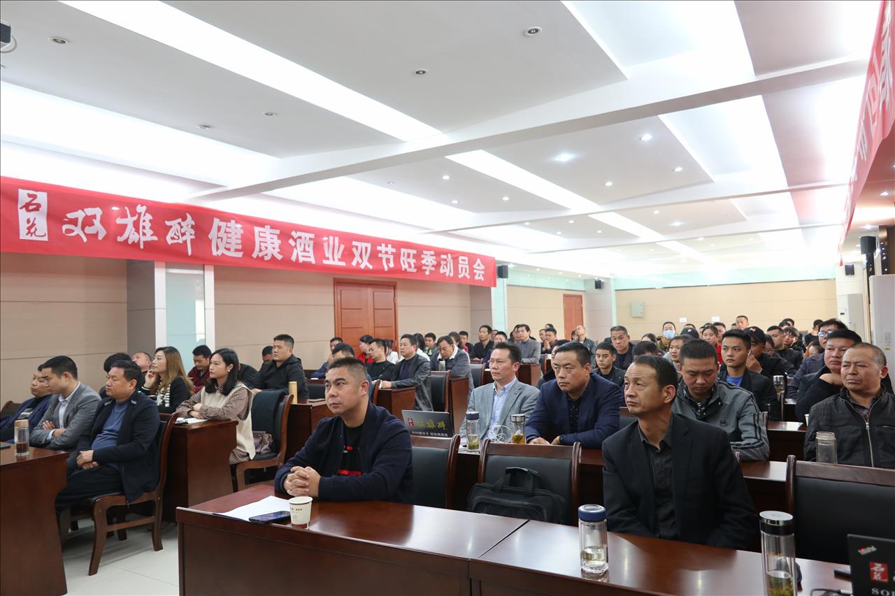 會議由雙雄醉健康酒業(yè)營銷總監(jiān)胡華俊主持,胡總宣講了雙節(jié)活動方案,雙雄醉雙節(jié)宣傳語“佳節(jié)暢飲雙雄醉,吉象如意帶回家”閃亮登場。大象自古就是靈獸,象諧音祥、相,寓意著吉祥如意、出將入相,靈象現(xiàn)世則天下太平。2020年是不平凡的一年,因為疫情,每一次親朋相聚,都倍感珍惜,2021年,團聚在一起,一起喝雙雄醉健康酒,過吉祥如意年,為回饋消費者,雙雄醉健康酒業(yè)特準備了數(shù)萬壇“吉象如意”酒和“萬象更新”酒投放市場,讓數(shù)萬家庭都能夠享受健康好酒、享受吉祥安康!太平有象!
