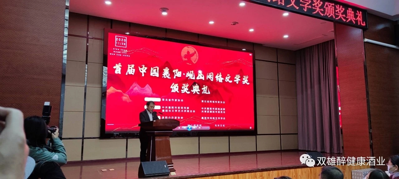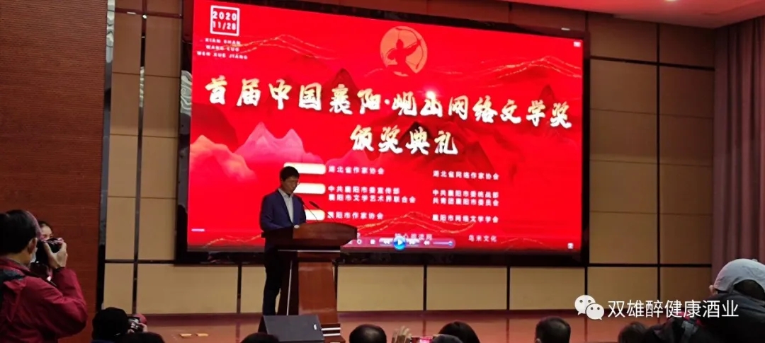 11月28日,中國襄陽·峴山網(wǎng)絡(luò)文學(xué)獎頒獎典禮在襄陽市工會干校舉行。網(wǎng)絡(luò)文學(xué)大咖“匪我思存”、“吱吱”、“羅曉”、“滄溟水”、“心在流浪”等150余人參加頒獎典禮活動。仙俠經(jīng)典劇《仙劍奇?zhèn)b傳》作者“管平潮”、熱播劇《慶余年》作者“貓膩”、《誅仙》作者“蕭鼎”、《變臉武士》作者“跳舞”等來自全國的嘉賓通過線上進行了互動并致賀。此次網(wǎng)絡(luò)文學(xué)頒獎活動是近年來襄陽規(guī)格最高、規(guī)模最大的一次文學(xué)盛會。雙雄醉健康酒業(yè)為此次活動提供贊助,雙雄醉健康酒Q300億為慶典指定用酒。