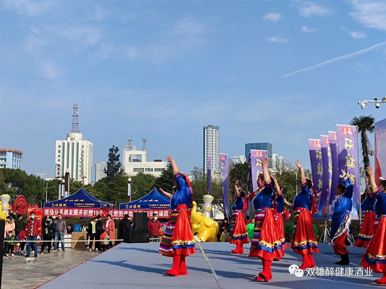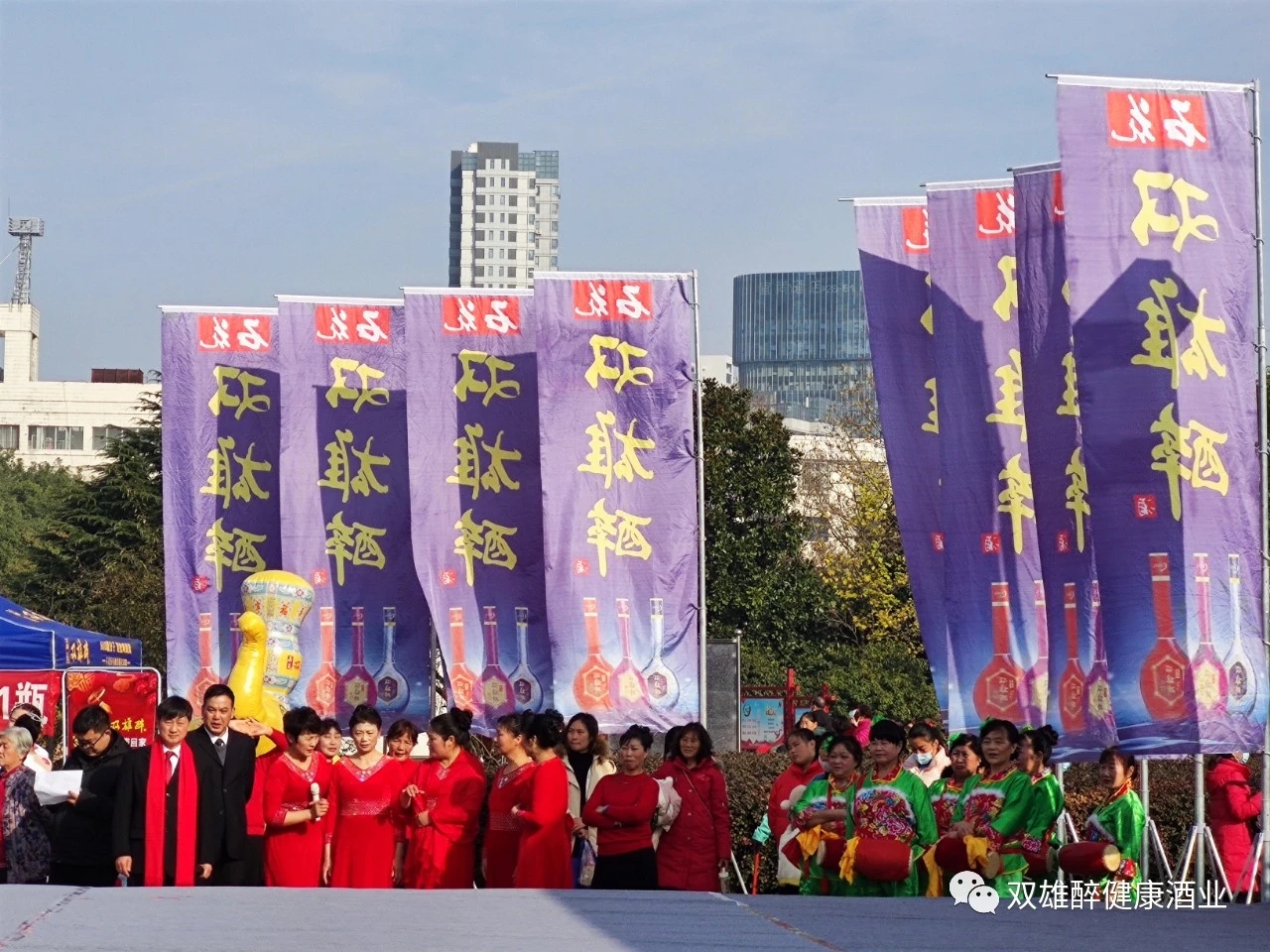 佳節(jié)暢飲雙雄醉,吉象如意帶回家,石花雙雄醉襄州區(qū)域經(jīng)理彭海軍代表公司發(fā)言,希望美酒雙雄醉給大家?guī)砑槿缫?、福壽康寧的好運氣,帶來萬象更新、蒸蒸日上的新機遇!并祝各位來賓、各位朋友們?nèi)缤p雄醉酒的品質(zhì)一樣,更美、更順、更健康!預(yù)祝廣場舞大賽圓滿成功!