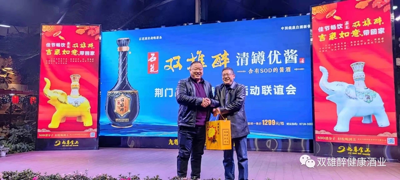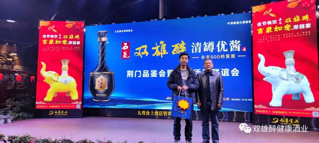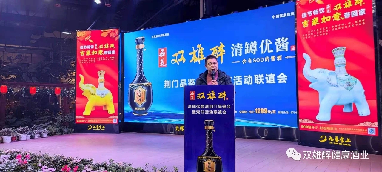 雙雄醉荊門合伙人楊家林先生致賀詞,楊總表示,雙雄醉是石花酒業(yè)的戰(zhàn)略新品,在荊門成功上市一年來,得到了荊門市場商家和消費者的認可,我們對雙雄醉酒信心十足、對雙雄醉酒業(yè)團隊信心十足,清罇優(yōu)醬酒是含SOD的醬酒,產(chǎn)品有特色,品質(zhì)有保證,相信清罇優(yōu)醬酒一定能得到荊門人民的厚愛。