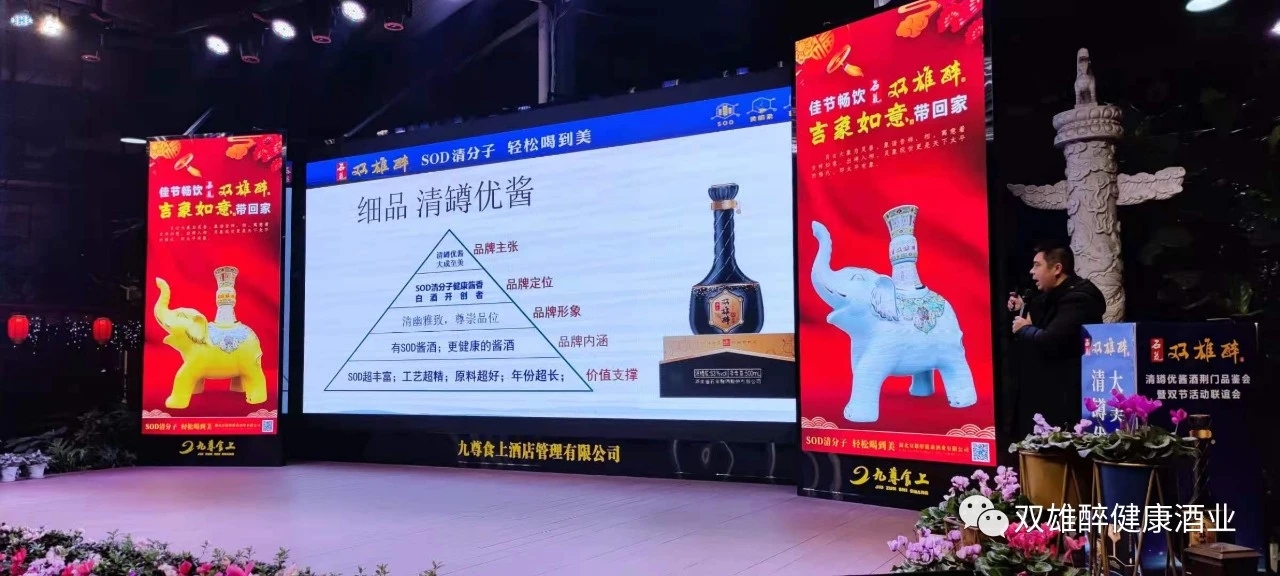 雙雄醉健康酒業(yè)銷售總監(jiān)胡華俊講解清罇優(yōu)醬酒產(chǎn)品特點并宣布雙節(jié)活動政策,清罇優(yōu)醬酒主要有四大特點:SOD超豐富;工藝超精;原料超好;年份超長;清罇優(yōu)醬酒,SOD清分子健康醬香白酒開創(chuàng)者,開創(chuàng)了醬香白酒的新品類。
