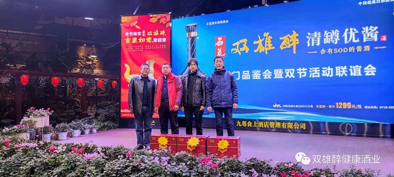 石花雙雄醉,輕松喝到美。2020年12月21日,雙雄醉清罇優(yōu)醬荊門品鑒會暨雙節(jié)活動聯(lián)誼會在九尊食上成功舉辦!荊門社會各界朋友、合作伙伴等200多人聚集一堂,品雙雄醉清罇優(yōu)醬酒,論財富共創(chuàng)共贏之道。在新春來臨之際,共同探索中國健康白酒的獨特魅力,感知雙雄醉的品牌深度。