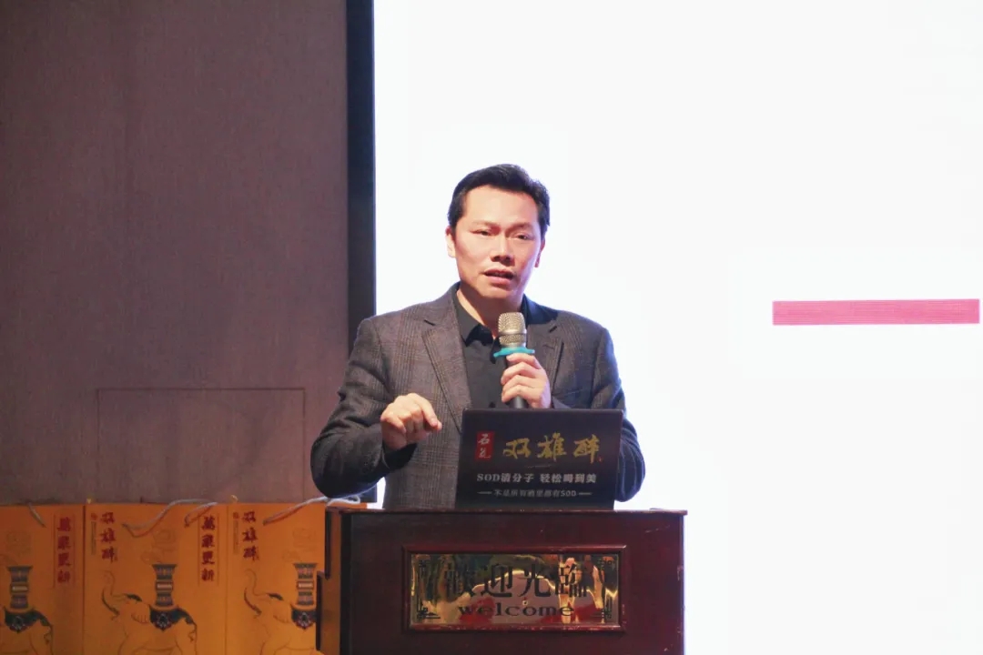 雙雄醉健康酒業(yè)營銷總監(jiān)胡華俊就加盟合伙人模式進行了詳細介紹,胡總表示,合伙人制模式,最大的魅力所在就是共享市場的紅利,變生意為事業(yè),變經銷為合伙,大家一起把市場做大,持久共享市場發(fā)展起來帶來的紅利。我們是命運共同體,是一支連為一心,結為一體,風雨同舟,榮辱與共的同呼吸共命運團隊。胡總強調,各位合伙人要搶抓機遇,發(fā)揚與壯大優(yōu)勢,做足氛圍,拉動消費,扎牢基礎,迎接雙雄醉共建、共生、共享時代!