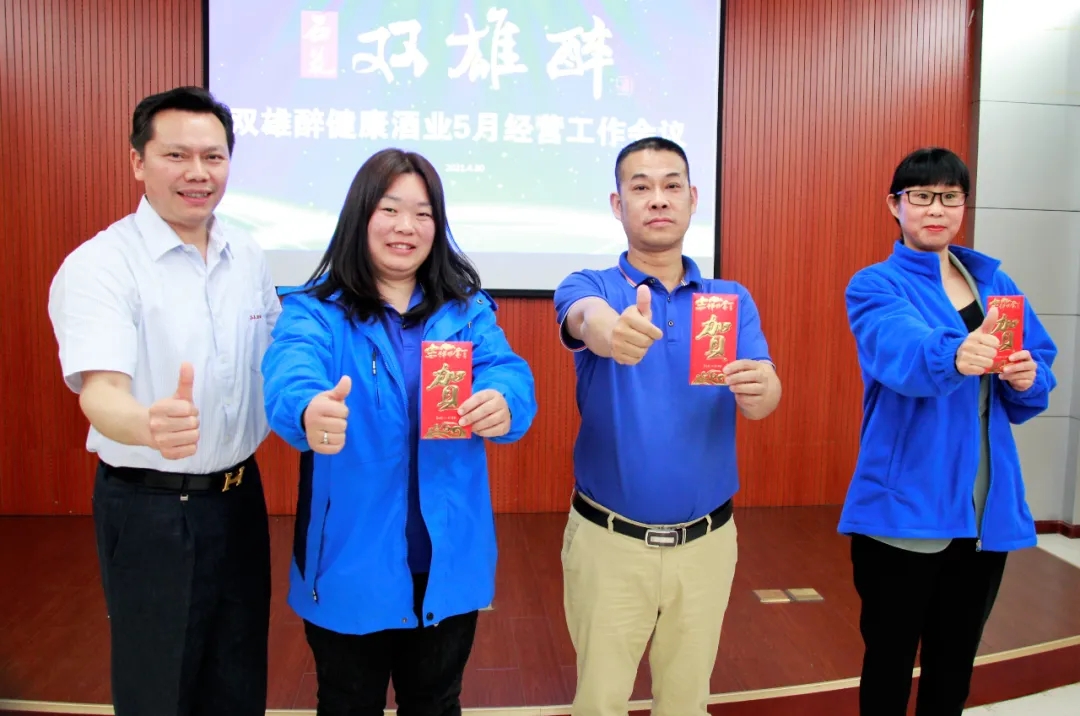 胡總總結(jié)了4月經(jīng)營工作總體情況,有針對性部署了5月經(jīng)營工作計劃。公司對襄州、開封、襄城團(tuán)隊進(jìn)行獎勵,恭喜以上3個區(qū)域取得優(yōu)秀業(yè)績。胡總強(qiáng)調(diào),各位家人,機(jī)會就在我們的面前,今年是雙雄醉成長的關(guān)鍵之年,這一年的付出關(guān)系到大家未來發(fā)展的地位和機(jī)遇!相信雙雄醉,大家全力以赴實現(xiàn)保五爭七目標(biāo),一起做大做強(qiáng)!