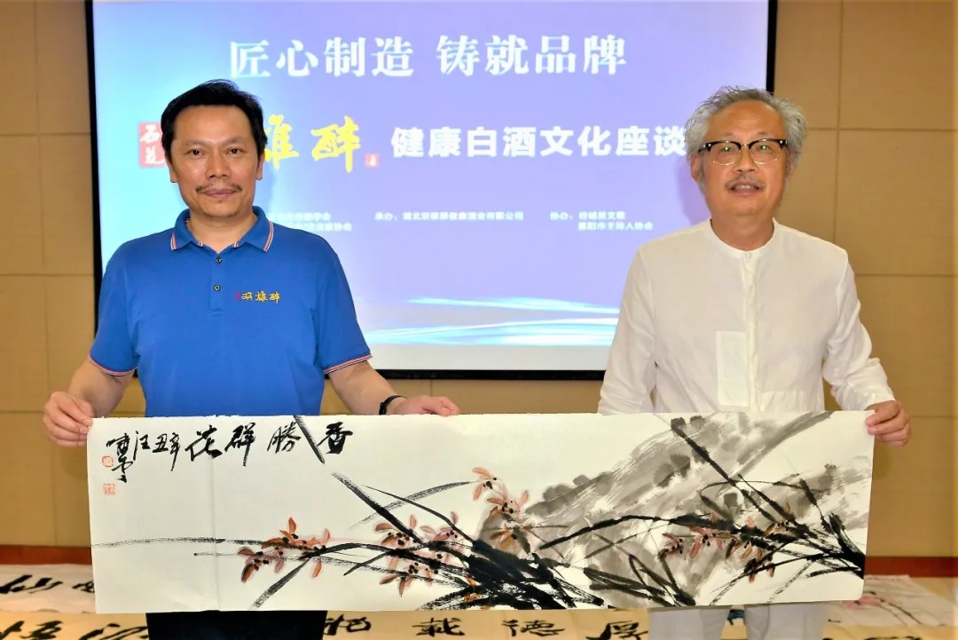 襄陽市經(jīng)濟文化傳媒學會榮譽主席石和平主持本次座談會,石主席表示,白酒產(chǎn)業(yè)的發(fā)展離不開文化的支撐,由襄陽市經(jīng)濟文化傳媒學會、襄陽市企業(yè)聯(lián)合會開展藝術(shù)家走基層活動,得到谷城縣文聯(lián)、襄陽市主持人協(xié)會的鼎力協(xié)助。這次走進石花雙雄醉,通過白酒文化與書畫文化相結(jié)合,弘揚優(yōu)秀傳統(tǒng)文化,為企業(yè)與文化藝術(shù)之間進一步交流搭建互動平臺,推進企業(yè)文化建設(shè),提升企業(yè)文化品位,促進企業(yè)全面發(fā)展。