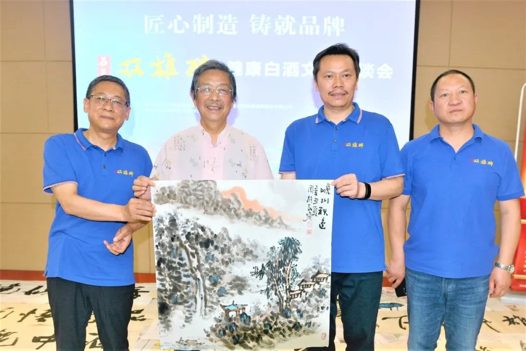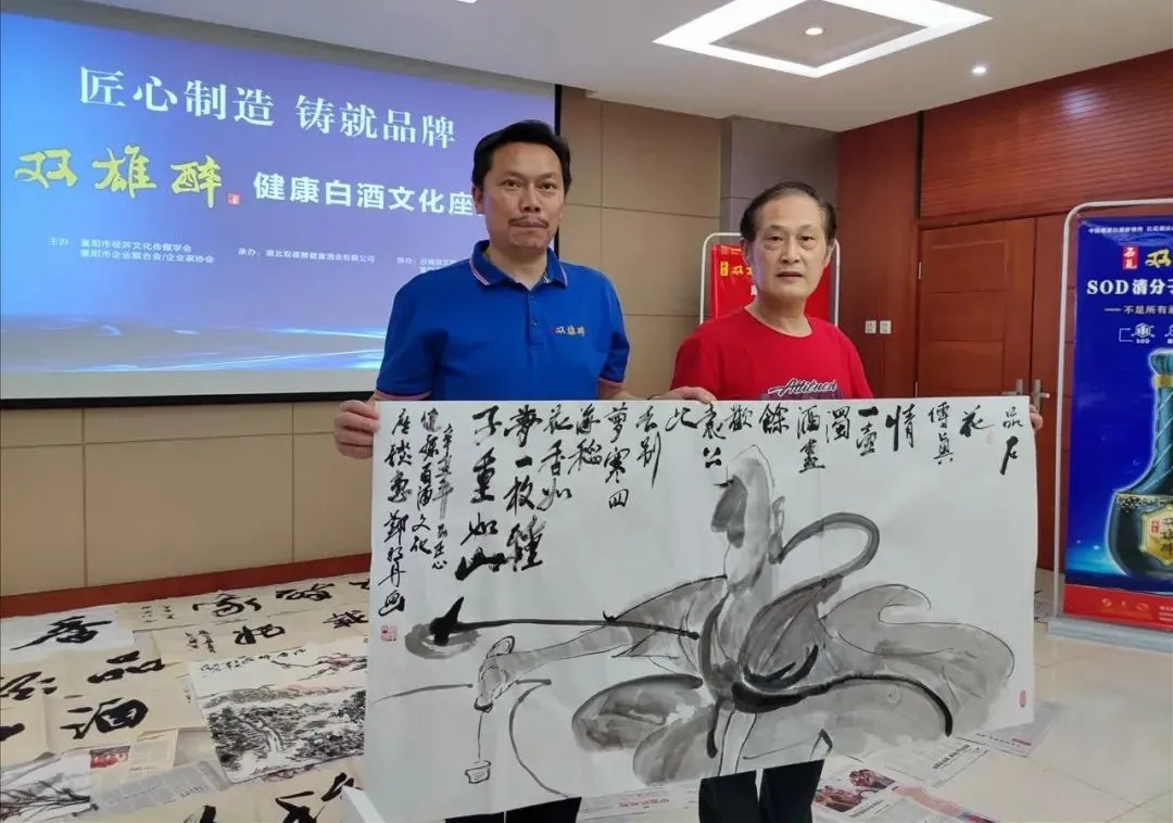 匠心鑄就品牌,藝術(shù)擦亮品牌,5月31日,匠心制造  鑄就品牌——“雙雄醉”健康白酒文化座談會在石酒產(chǎn)業(yè)園召開,20多位書畫名家為雙雄醉助力,品味雙雄醉健康酒,增精氣神、悟天人之道,揮灑傳世精品,為雙雄醉酒插上文化騰飛的翅膀。本次活動由襄陽市經(jīng)濟文化傳媒學會、襄陽市企業(yè)聯(lián)合會/企業(yè)家協(xié)會主辦,谷城縣文聯(lián)、襄陽市主持人協(xié)會協(xié)辦,原襄陽文聯(lián)主席、市政府參事卓道成,襄陽市僑聯(lián)原副主席、秘書長李斌、襄陽企聯(lián)常務(wù)副秘書長申文寶、趙玥,市經(jīng)濟文化傳媒學會榮譽主席石和平,副主席劉太云、施發(fā)軍、肖光義,谷城縣文聯(lián)主席王金文,與湖北省書協(xié)副主席、襄陽市書法家協(xié)會主席劉水露,書法家協(xié)會副主席金光林,襄陽市美術(shù)家協(xié)會副主席汪嘯云、汪國云、周解民、黃亞東,著名畫家劉庸之、著名書法家田文化,谷城縣美協(xié)劉勇慶、鄧明丹,谷城縣書協(xié)石玉軒、彭雪濱等二十多位書畫家在雙雄醉酒業(yè)總經(jīng)理鄭書軍的陪同下,參觀了中國生態(tài)白酒莊園和石酒品牌館。