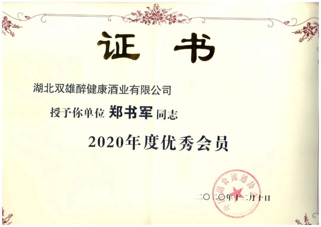 中國副食流通協(xié)會(huì)授予總經(jīng)理鄭書軍為2020年度優(yōu)秀會(huì)員