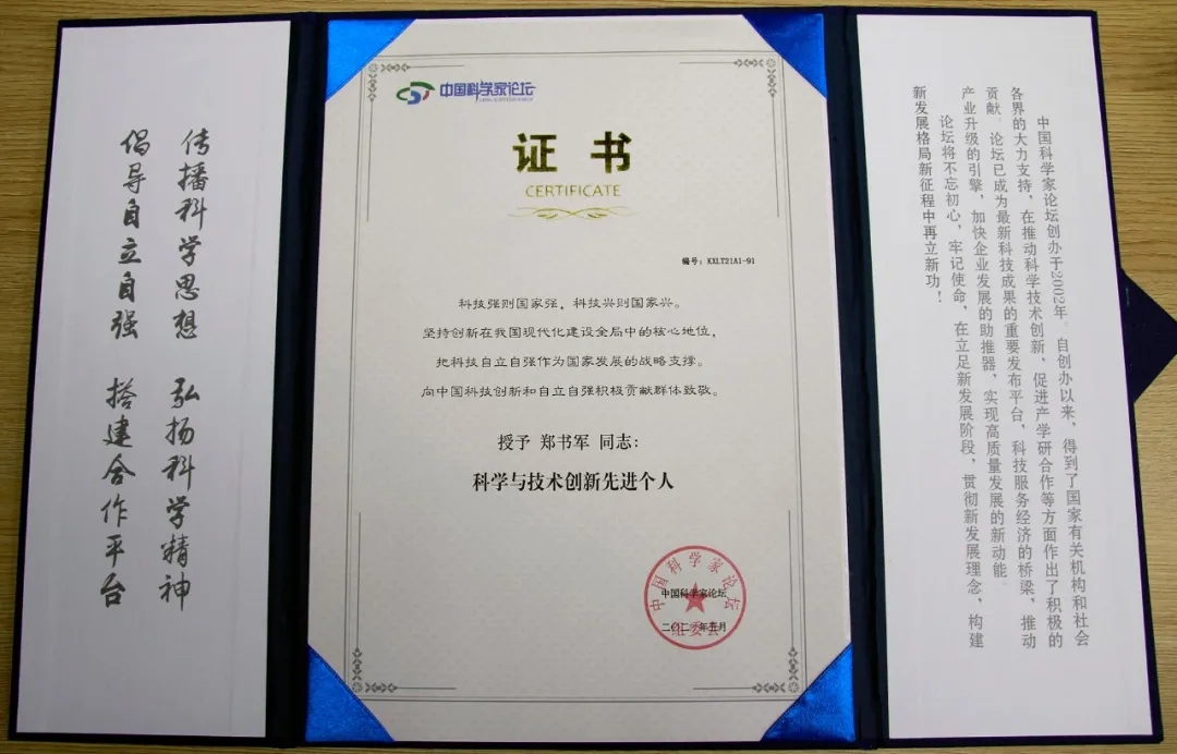 石花雙雄醉——“中國科學家論壇科技創(chuàng)新示范單位”,“中國科學家論壇理事會常務理事單位”,雙雄醉健康酒業(yè)總經(jīng)理鄭書軍先生——“中國科學家論壇科學與技術(shù)創(chuàng)新先進個人”