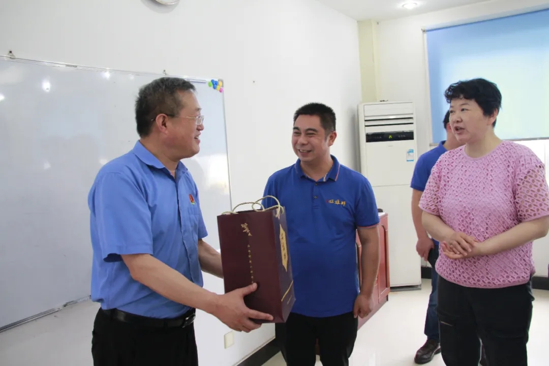 為營造尊重企業(yè)家、服務(wù)企業(yè)家、關(guān)愛企業(yè)家的濃厚氛圍,充分激發(fā)企業(yè)家以更大熱情干事創(chuàng)業(yè)。6月16日,襄陽市企業(yè)聯(lián)合會數(shù)據(jù)部部長劉輝、雙雄醉健康酒業(yè)大客服務(wù)部總監(jiān)李愛軍,帶著由市經(jīng)信局段細(xì)柱局長、市企聯(lián)吳少偉會長簽名的《襄陽英雄 青春永駐》的生日賀卡和生日蛋糕,來到東風(fēng)河西(襄陽)汽車飾件系統(tǒng)有限公司,為過生日的黨委書記郭智送上生日祝福。