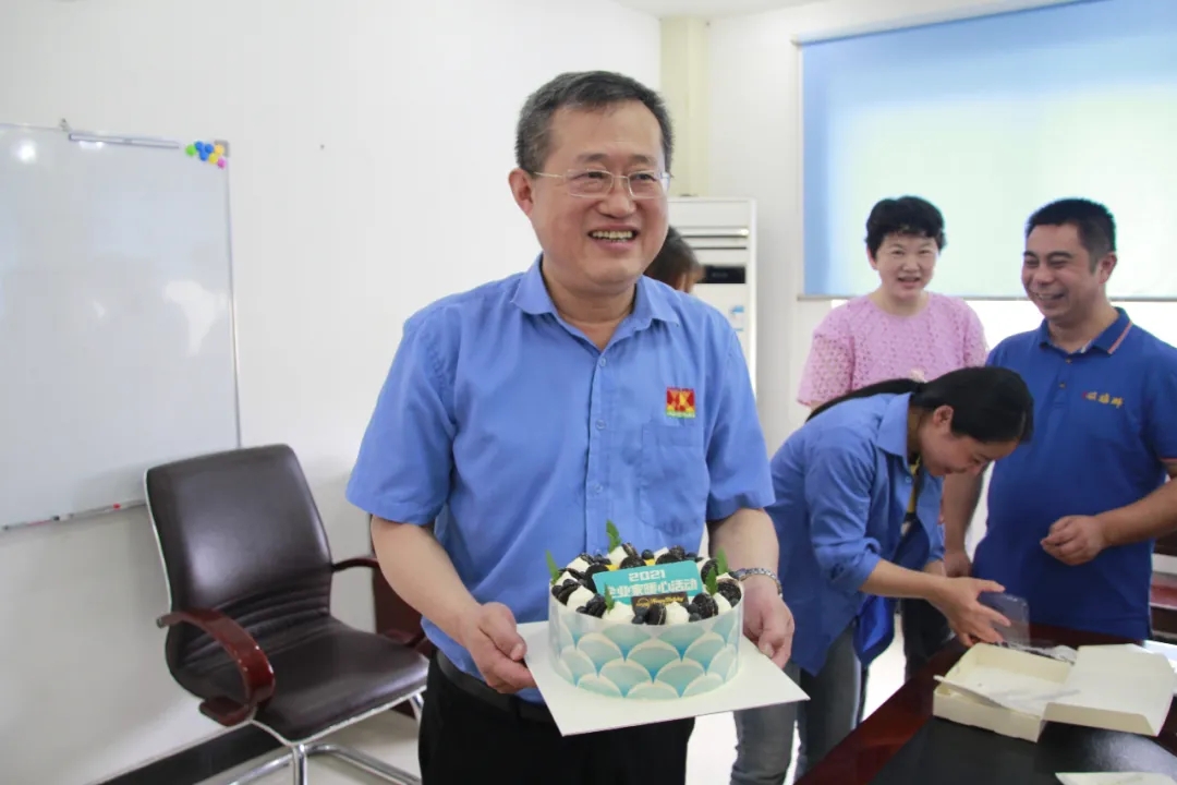大家齊聲為總經(jīng)理朱永軍唱生日快樂歌