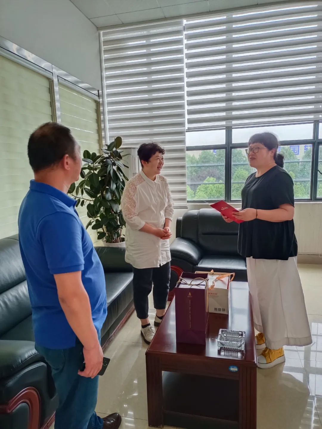 6月17日下午,襄陽市企業(yè)聯(lián)合會數(shù)據(jù)部部長劉輝、雙雄醉健康酒業(yè)大客服務(wù)部總監(jiān)李愛軍,帶著《襄陽英雄 青春永駐》的生日賀卡和生日蛋糕,來到湖北時瑞達(dá)重型工程機(jī)械有限公司,為過生日的黨委書記胡艷送上生日祝福。
