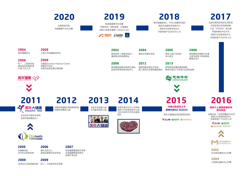 美年大健康產(chǎn)業(yè)控股股份有限公司始創(chuàng)于2004年,是中國(guó)規(guī)模和影響力顯著的健康體檢與醫(yī)療集團(tuán),總部位于上海。于2018年正式完成中國(guó)內(nèi)地版圖的全覆蓋。截至2020年年底,美年健康擁有由行業(yè)專(zhuān)家、醫(yī)技護(hù)人員等近35,000人組成的的專(zhuān)業(yè)服務(wù)團(tuán)隊(duì),近五年來(lái)累計(jì)已為超過(guò)1.1億人次提供專(zhuān)業(yè)健康服務(wù)。