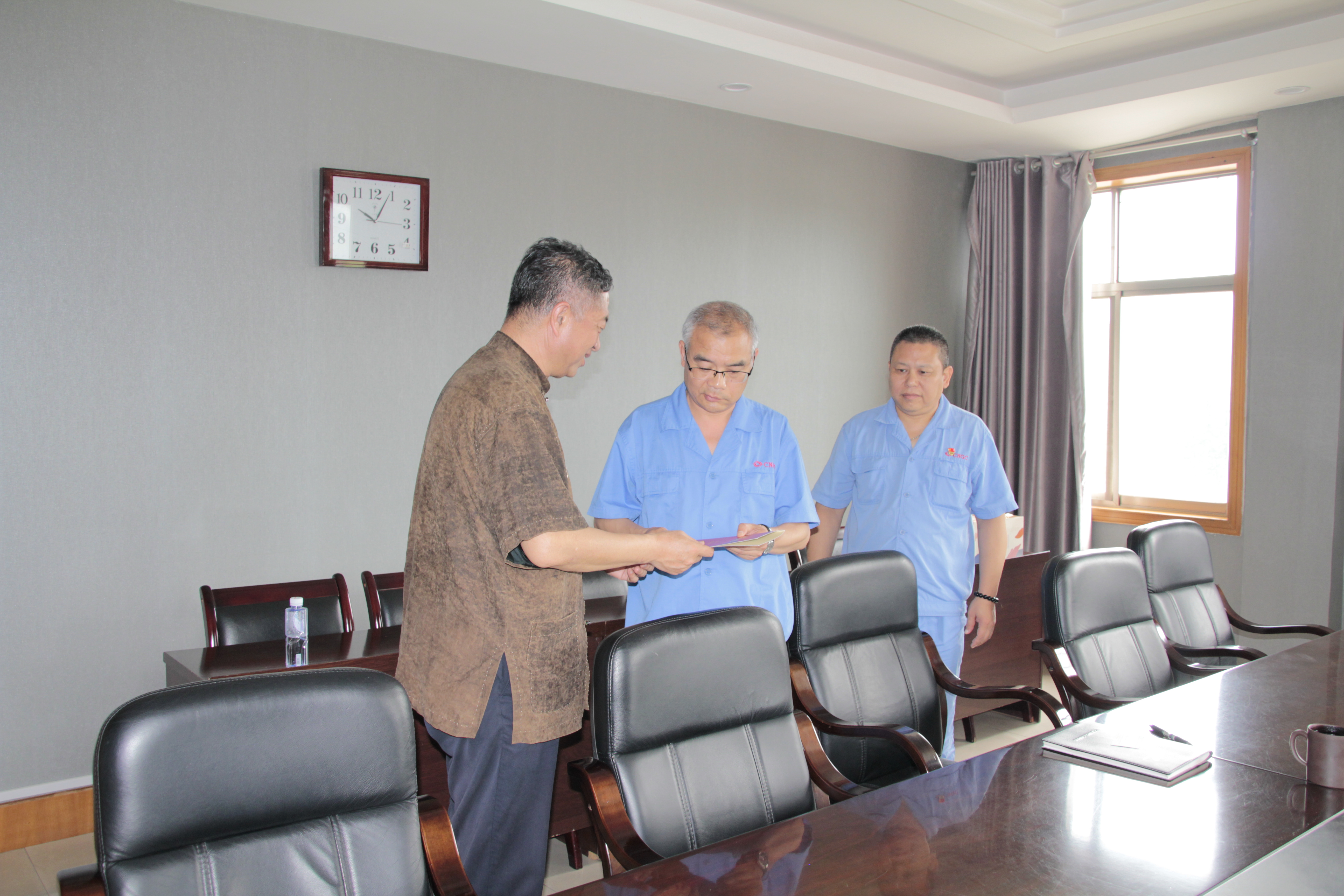 為進(jìn)一步提高襄陽(yáng)企業(yè)家的獲得感和滿(mǎn)意度,6月25日,在襄陽(yáng)市企業(yè)聯(lián)合會(huì)常務(wù)副會(huì)長(zhǎng)兼秘書(shū)長(zhǎng)趙樂(lè)成的帶領(lǐng)下,雙雄醉健康酒業(yè)總經(jīng)理鄭書(shū)軍、營(yíng)銷(xiāo)總監(jiān)胡華俊、大客服務(wù)部總監(jiān)李?lèi)?ài)軍、帶著由市經(jīng)信局段細(xì)柱局長(zhǎng)、市企聯(lián)吳少偉會(huì)長(zhǎng)簽名的《襄陽(yáng)英雄 青春永駐》的生日賀卡和生日蛋糕,來(lái)到湖北東方化工有限公司,為即將過(guò)生日的湖北東方化工有限公司黨委副書(shū)記、總經(jīng)理劉保新送上生日祝福。