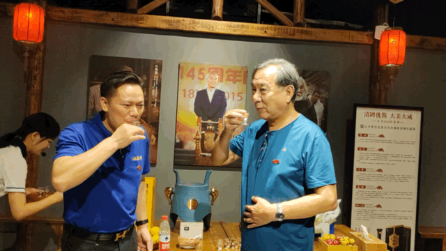 畢海峰老師在場館內(nèi)品嘗雙雄醉清罇優(yōu)醬,對優(yōu)醬酒的品質(zhì)和口感表達了高度贊揚