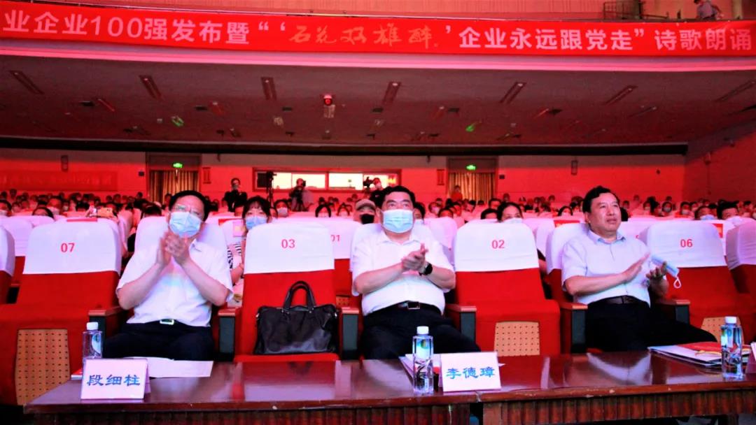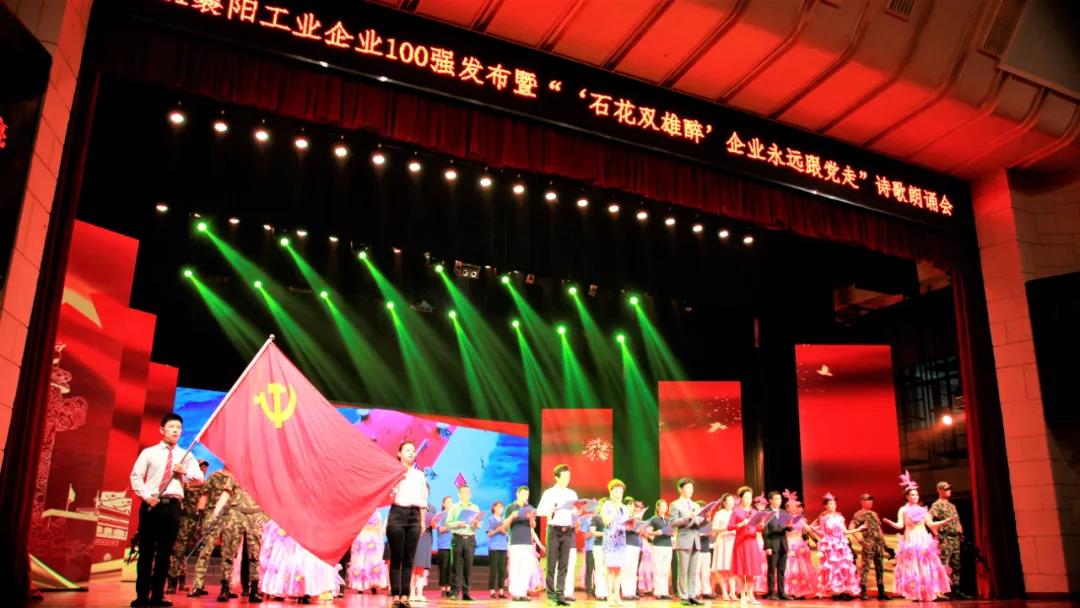 百年輝煌賦成華章,9月18日,2021襄陽(yáng)工業(yè)企業(yè)100強(qiáng)發(fā)布暨“‘石花雙雄醉’企業(yè)永遠(yuǎn)跟黨走”詩(shī)歌朗誦會(huì)在襄陽(yáng)劇院隆重舉行。會(huì)上正式發(fā)布了2021襄陽(yáng)市工業(yè)企業(yè)100強(qiáng)和工業(yè)企業(yè)納稅100強(qiáng)名單。2021襄陽(yáng)工業(yè)百?gòu)?qiáng)企業(yè)、納稅百?gòu)?qiáng)企業(yè)負(fù)責(zé)人、各縣市區(qū)科經(jīng)局和企聯(lián)負(fù)責(zé)人、市企聯(lián)會(huì)員企業(yè)負(fù)責(zé)人以及社會(huì)各界人士,相約而來(lái)共同慶祝中國(guó)共產(chǎn)黨百年華誕,表達(dá)全市企業(yè)和企業(yè)家堅(jiān)定聽黨話、真情感黨恩、永遠(yuǎn)跟黨走的真摯情懷。希望襄陽(yáng)企業(yè)家朋友堅(jiān)定信念、搶抓機(jī)遇,推動(dòng)襄陽(yáng)經(jīng)濟(jì)社會(huì)高質(zhì)量發(fā)展,在新的征程中書寫新的輝煌!