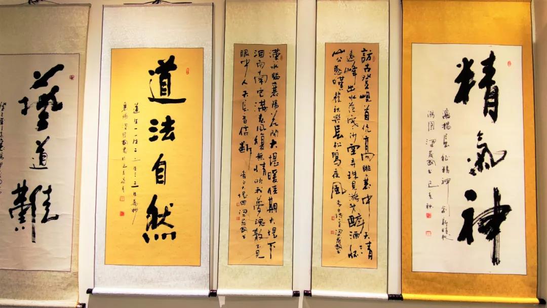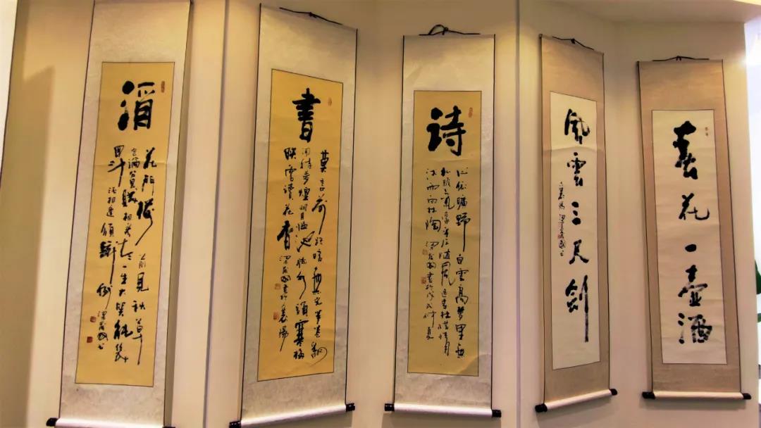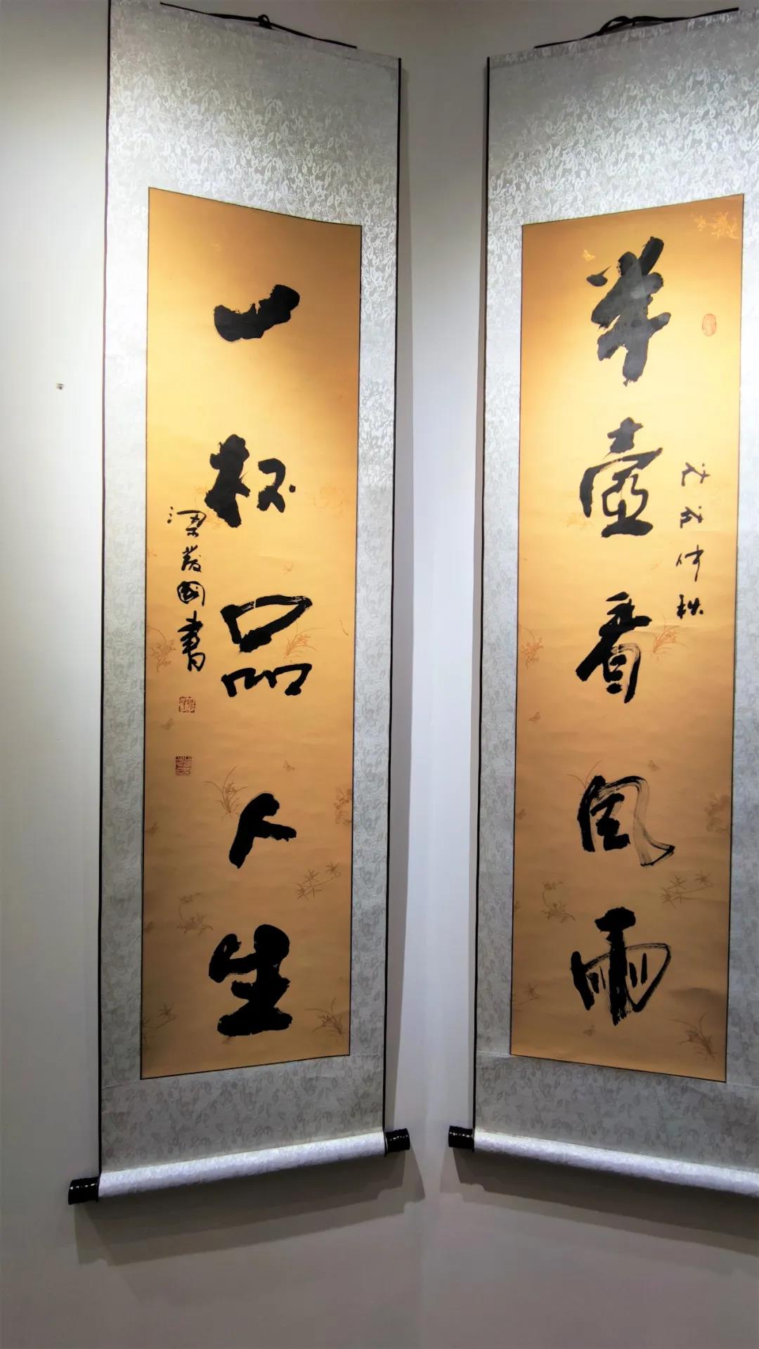 本次梁發(fā)國展出的書法作品一百多幅,作品題材豐富,主題鮮明,風(fēng)格各異,構(gòu)思新巧。大字榜書雄健灑脫,勢如破竹;條幅行草清秀挺拔似高山流水,線條自然,飛白有度;小品則典雅秀美、別有韻味。觀整幅作品其情趣,理念,神韻,意境自然,悟道不盡,會(huì)賞不絕!