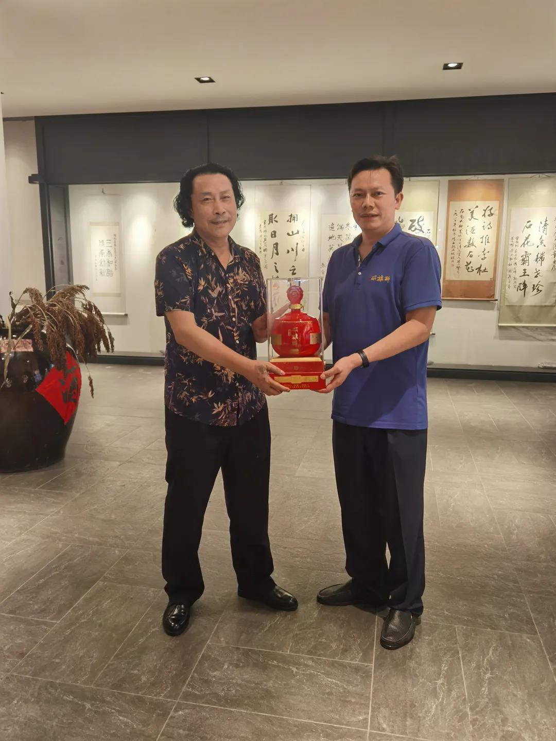 現(xiàn)場,雙雄醉總經(jīng)理鄭書軍向尹友香大師贈送珍藏價值極高的雙雄醉2021限量酒,向尹大師表示尊敬和贊賞,感謝尹大師的到來為石花雙雄醉更加增添了一分文人墨客的氣息。