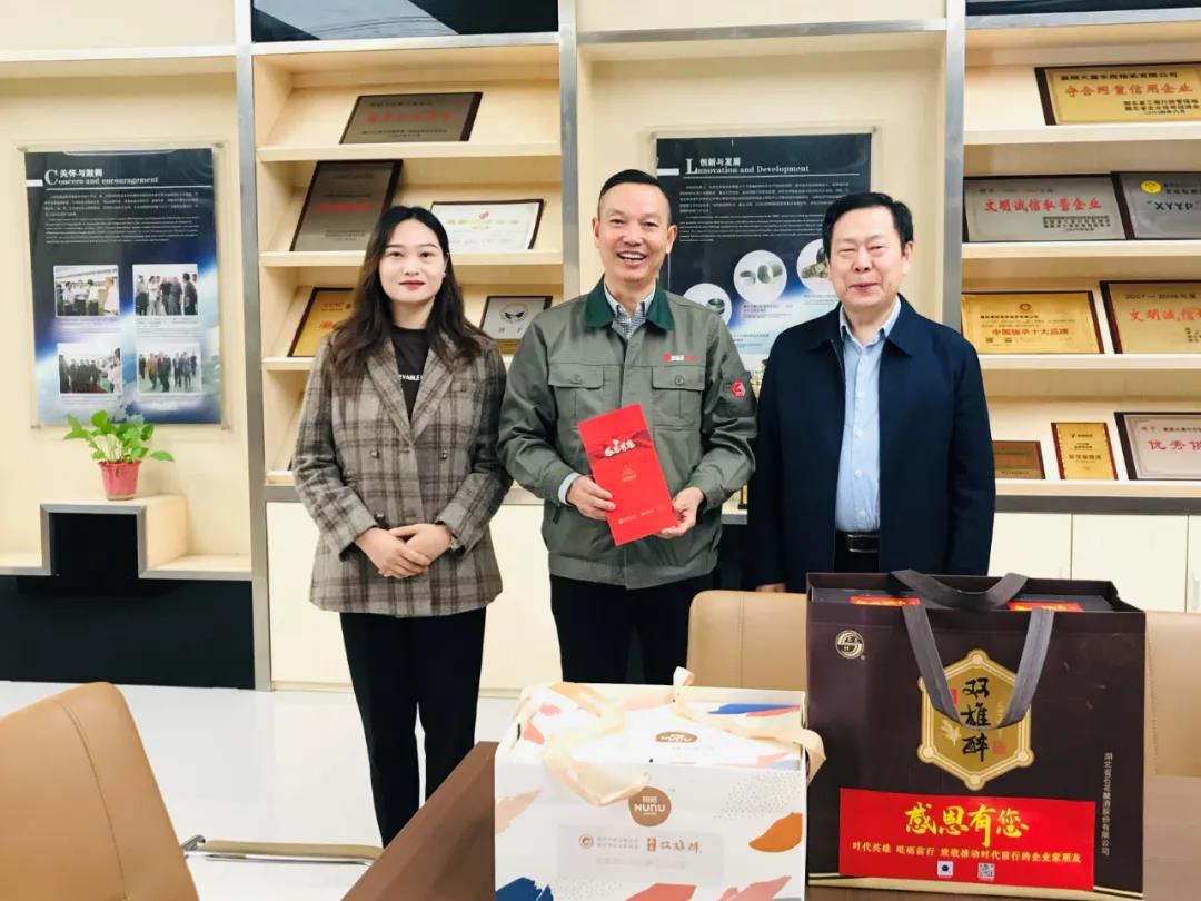 10月29日,襄陽鷹牌榮華軸承有限公司迎來了一批重要客人,襄陽企聯(lián)常務(wù)副秘書長申文寶,雙雄醉大客戶服務(wù)部經(jīng)理鄧歡歡提著生日蛋糕,拿著生日賀卡和雙雄醉優(yōu)醬酒為殷肇晴董事長準(zhǔn)備了一個(gè)大驚喜,原來今天是殷董事長生日。