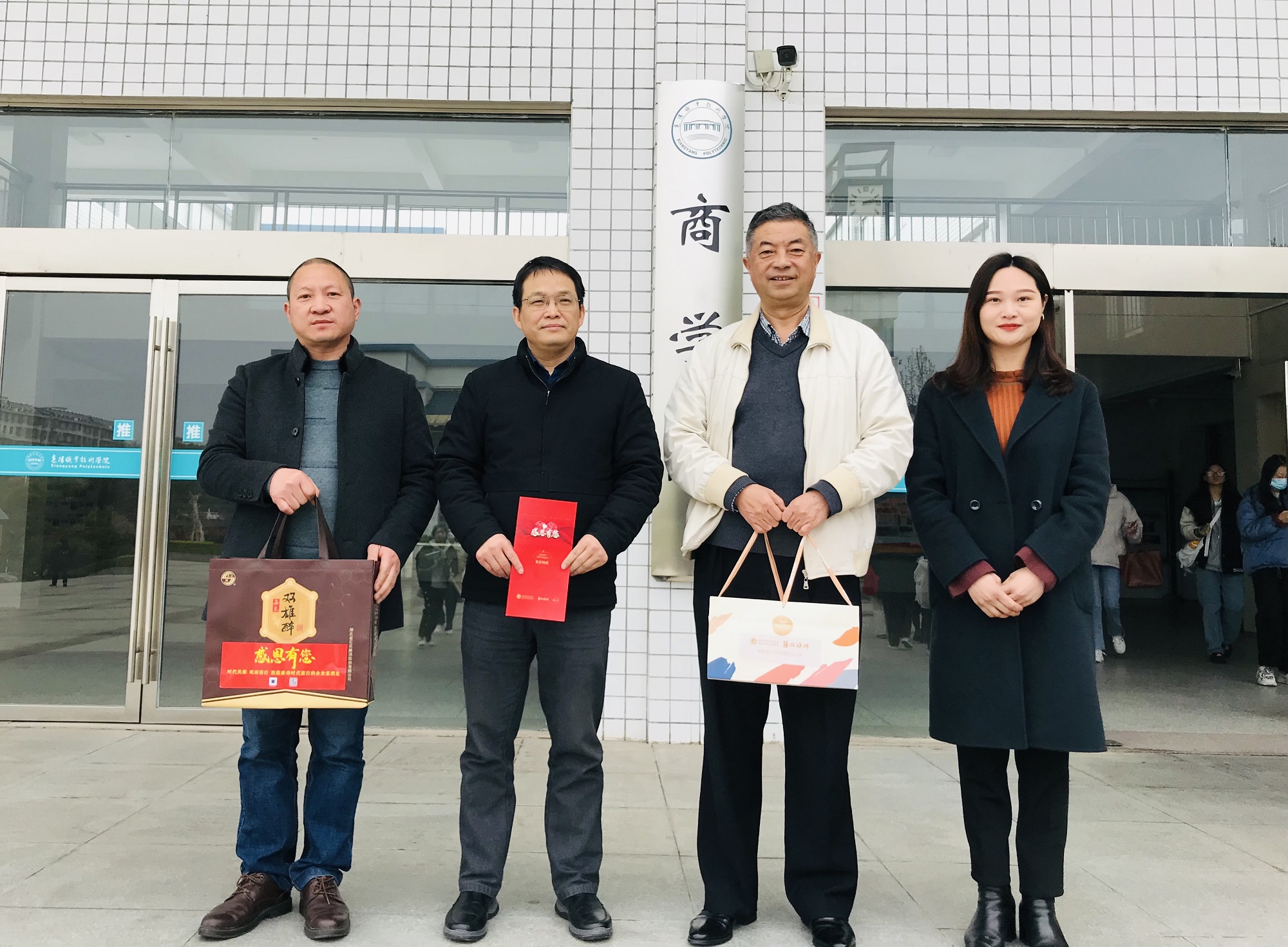 3月24日,這天是襄陽職業(yè)技術(shù)學(xué)院商學(xué)院汪博興院長的生日,襄陽市企業(yè)家協(xié)會常務(wù)副會長兼秘書長趙樂成、雙雄醉健康酒業(yè)大客戶服務(wù)部總監(jiān)李愛軍為汪博興院長送來了生日禮物——由市經(jīng)信局楊富杰局長、市企聯(lián)吳少偉會長簽名的《襄陽英雄 青春永駐》的生日賀卡、生日蛋糕和雙雄醉含SOD的醬酒——清醬。