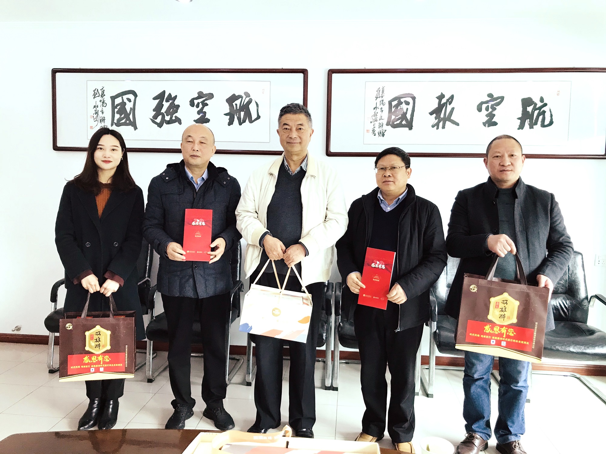 3月24日是襄陽航力機電技術(shù)發(fā)展有限公司王強董事長和汪國想總經(jīng)理的生日,襄陽市企業(yè)家協(xié)會常務(wù)副會長兼秘書長趙樂成、雙雄醉健康酒業(yè)大客戶服務(wù)部總監(jiān)李愛軍,前往襄陽航力機電技術(shù)發(fā)展有限公司,為兩位企業(yè)家送來生日祝福和生日禮物——由市經(jīng)信局楊富杰局長、市企聯(lián)吳少偉會長簽名的《襄陽英雄 青春永駐》的生日賀卡、生日蛋糕和雙雄醉含SOD的醬酒——清醬。