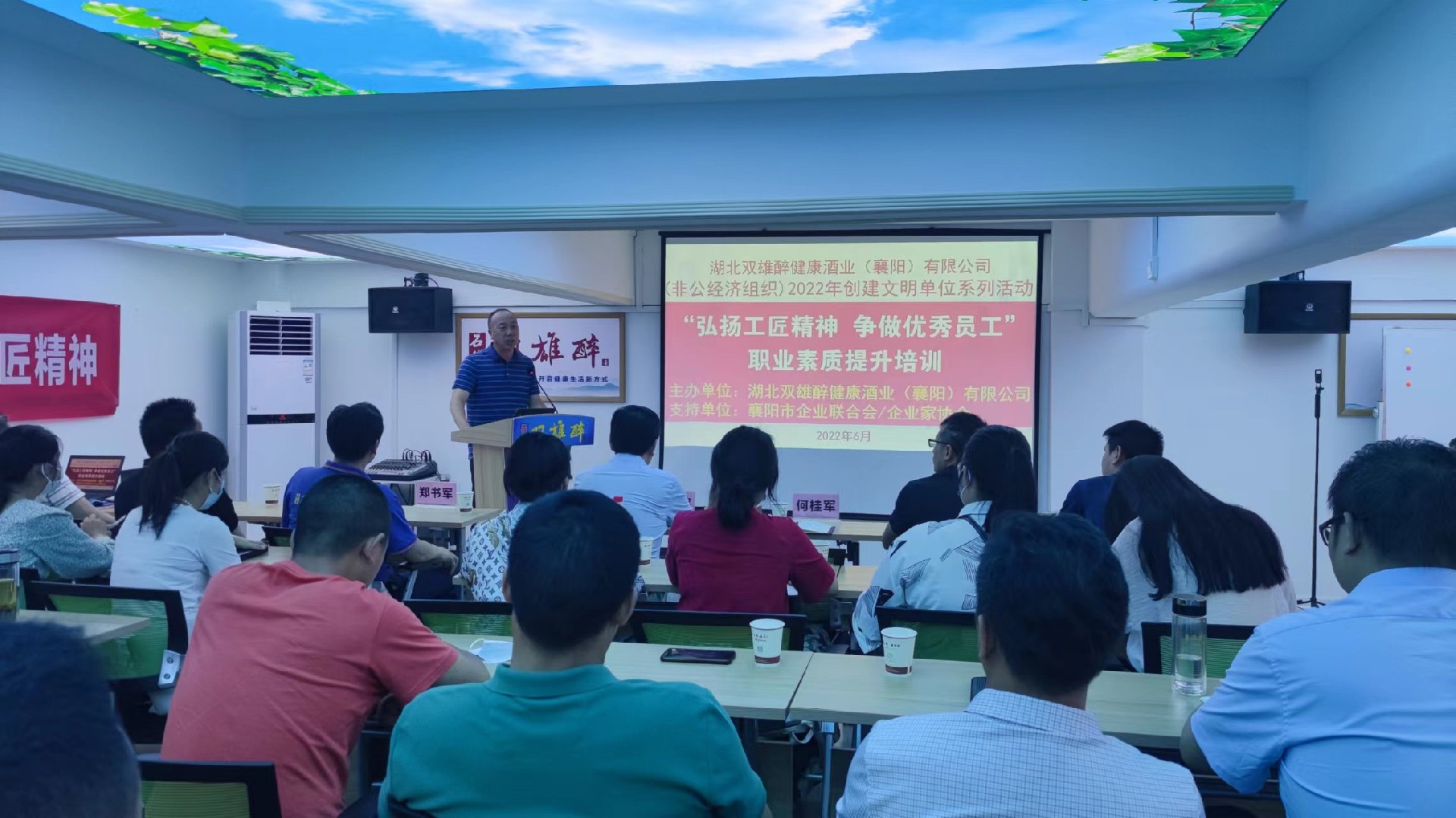 6月15日,由襄陽市精神文明建設(shè)辦公室、襄陽市經(jīng)濟(jì)和信息化局指導(dǎo)、襄陽市企業(yè)聯(lián)合會/企業(yè)家協(xié)會支持,湖北雙雄醉健康酒業(yè)有限公司主辦的“弘揚工匠精神 爭做優(yōu)秀員工”職業(yè)素質(zhì)提升培訓(xùn)在雙雄醉健康酒業(yè)營銷總部二樓會議室舉行。市委宣傳部文明創(chuàng)建一科科長何桂軍、市經(jīng)信局機(jī)關(guān)黨委專職副書記田志強(qiáng)、市企聯(lián)常務(wù)副秘書長申文寶等領(lǐng)導(dǎo)出席本次會議,會議由雙雄醉健康酒業(yè)總經(jīng)理鄭書軍主持。