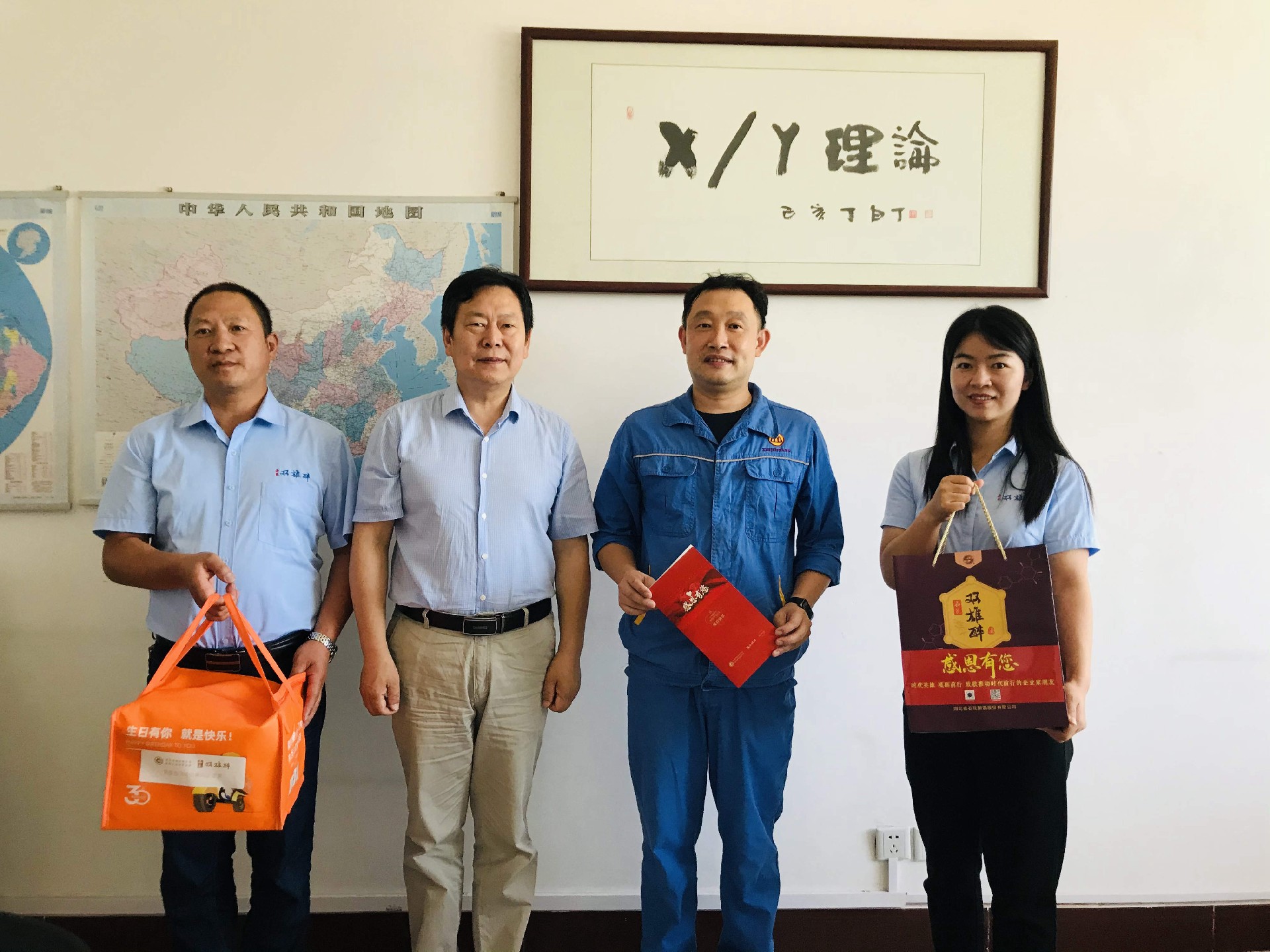 6月27日,這天是襄陽(yáng)九鼎昊天環(huán)保設(shè)備有限公司副總經(jīng)理張瑞的生日,襄陽(yáng)企聯(lián)常務(wù)副秘書長(zhǎng)申文寶、雙雄醉大客戶服務(wù)部總監(jiān)李愛軍帶著由襄陽(yáng)市領(lǐng)導(dǎo)付勁松副市長(zhǎng)、市經(jīng)信局楊富杰局長(zhǎng)和市企聯(lián)吳少偉會(huì)長(zhǎng)簽名的《襄陽(yáng)英雄 青春永駐》的賀卡和雙雄醉含有SOD的健康白酒,來到襄陽(yáng)九鼎昊天環(huán)保設(shè)備有限公司副總經(jīng)理張瑞,為張瑞總送上生日祝福,感謝張總為推動(dòng)襄陽(yáng)經(jīng)濟(jì)發(fā)展作出的貢獻(xiàn)!