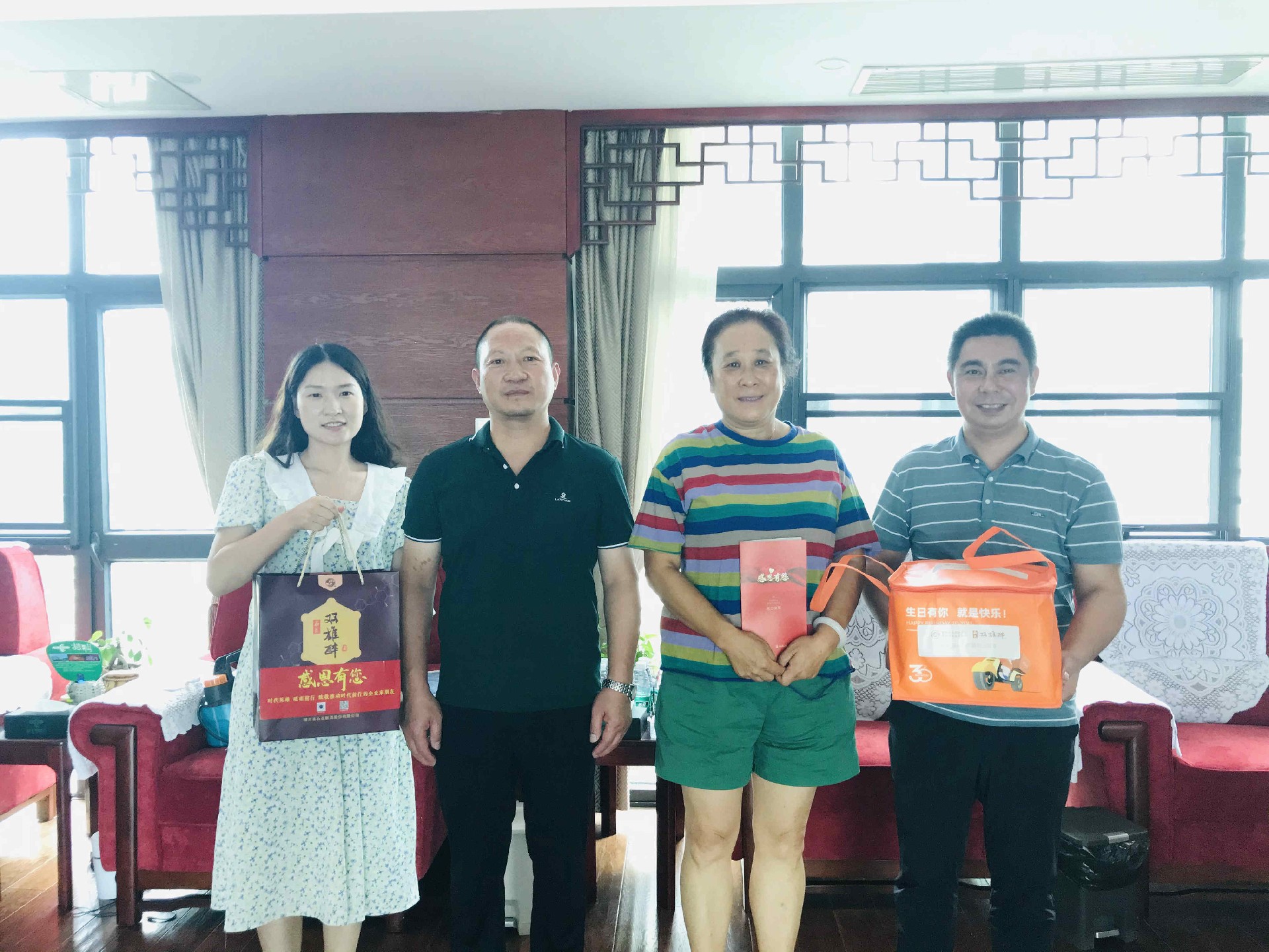 【雙雄醉贊助襄陽企業(yè)家暖心工程系列報道】負責人張建武、董事長梁曉軍、總經理葉金明、總經理陳佳收到暖心生日祝福