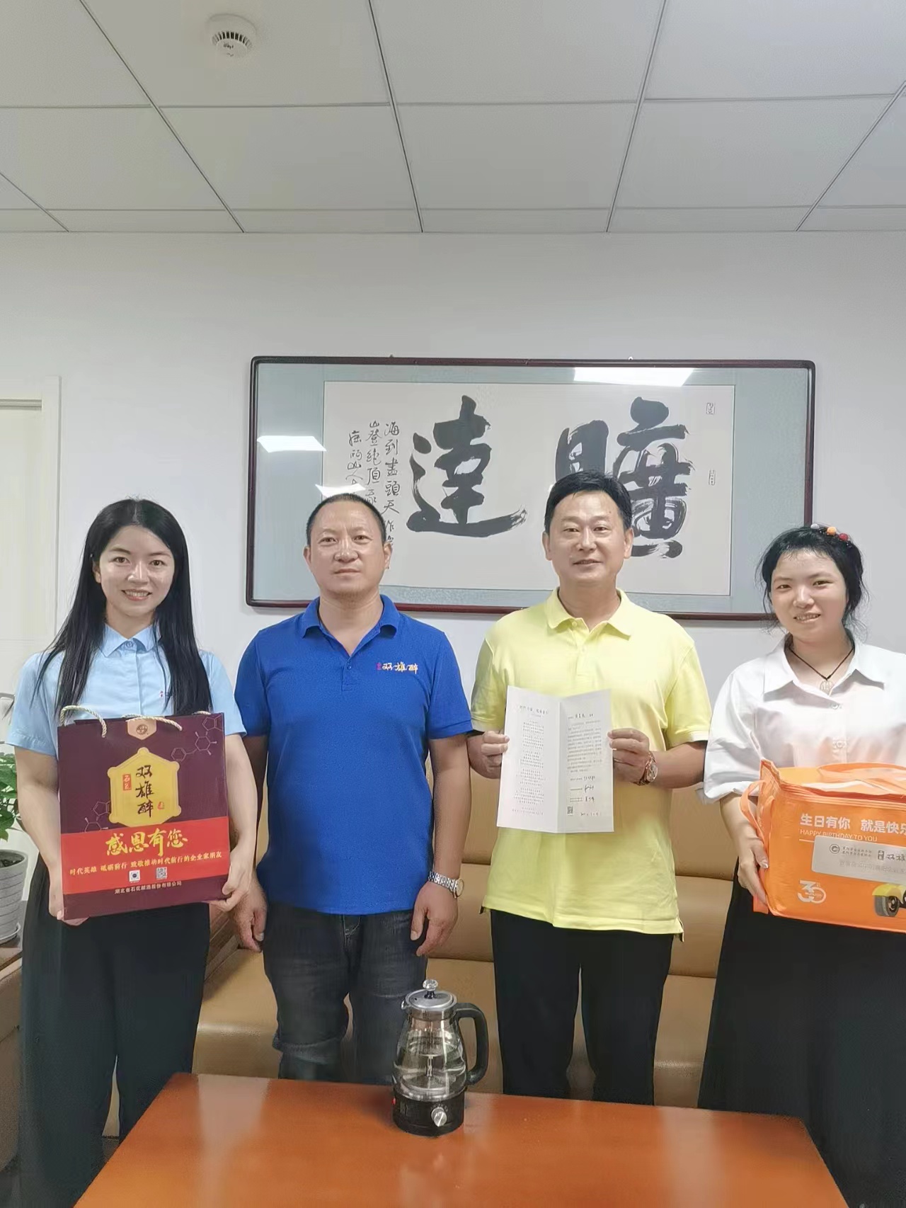 7月13日,這天正逢是際華三五四二紡織有限公司黨委書記周詠友的生日,襄陽企聯(lián)代表、雙雄醉大客服務部總監(jiān)李愛軍和雙雄醉樊城區(qū)域代理合伙人曹莉女士來到際華公司 ,為周詠友書記送上生日祝福。