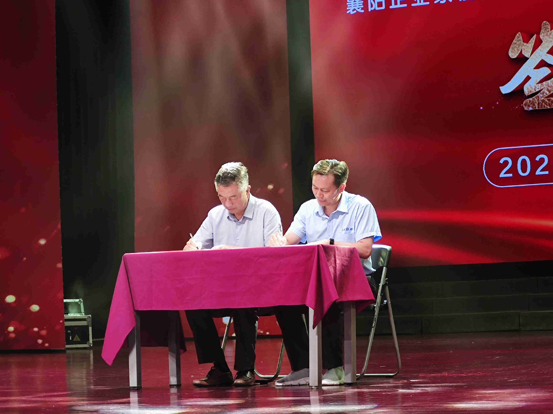 活動(dòng)現(xiàn)場(chǎng),襄陽(yáng)企聯(lián)常務(wù)副會(huì)長(zhǎng)兼秘書(shū)長(zhǎng)趙樂(lè)成與雙雄醉健康酒業(yè)總經(jīng)理鄭書(shū)軍簽訂禮送生日蛋糕的服務(wù)協(xié)議。