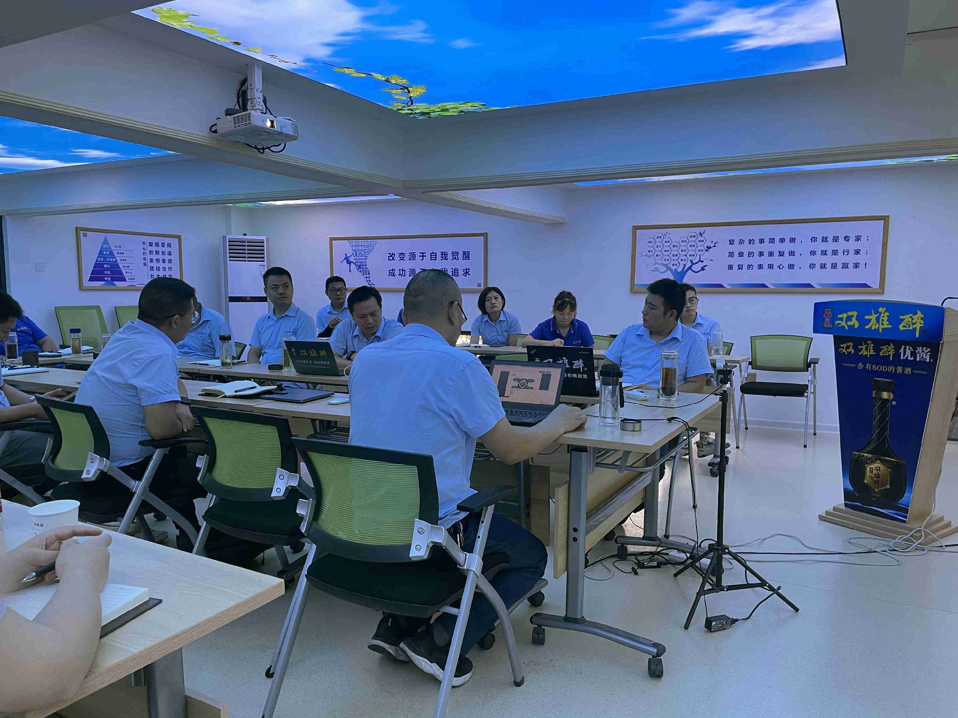 7月29日,石花雙雄醉召開復盤經(jīng)營計劃會議,二十余位銷售骨干齊聚雙雄醉營銷總部,部分外地員工通過視頻會議參加月會,會議由總經(jīng)理鄭書軍主持。