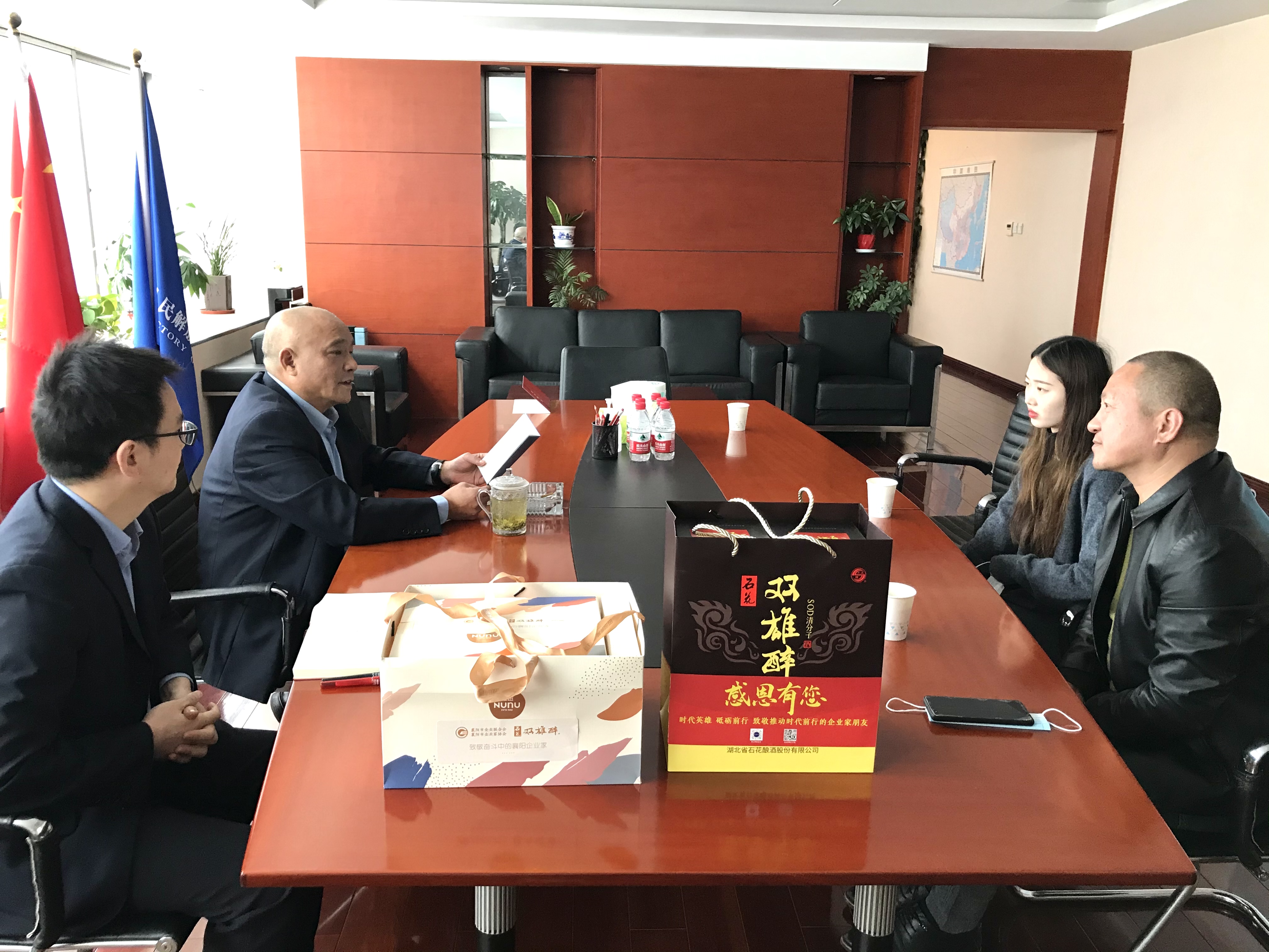 10月12日,襄陽企聯(lián)工作人員、雙雄醉健康酒業(yè)大客戶總監(jiān)李愛軍,帶著由市領(lǐng)導(dǎo)付勁松副市長、市經(jīng)信局楊富杰局長、市企聯(lián)吳少偉會長簽名的《襄陽英雄 青春永駐》生日賀卡、生日蛋糕以及雙雄醉含有SOD的健康白酒,來到中國人民解放軍第5713工廠,為過生日的黨委書記譚曉東送上生日祝福,感謝譚總為襄陽經(jīng)濟(jì)發(fā)展做出的貢獻(xiàn),并祝譚總生日快樂。