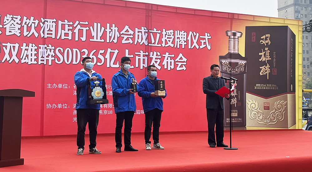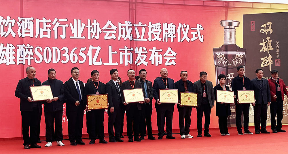 11月18日,谷城縣餐飲協(xié)會成立授牌儀式暨雙雄醉SOD365億酒上市發(fā)布會在谷城新博禧酒家舉行,谷城縣政協(xié)、市場監(jiān)督管理局領(lǐng)導,谷城餐飲協(xié)會及來自十堰、丹江口、襄陽、棗陽、宜城、南漳等市縣餐飲協(xié)會、酒店同行等來賓近400人,見證了授牌和上市盛況。