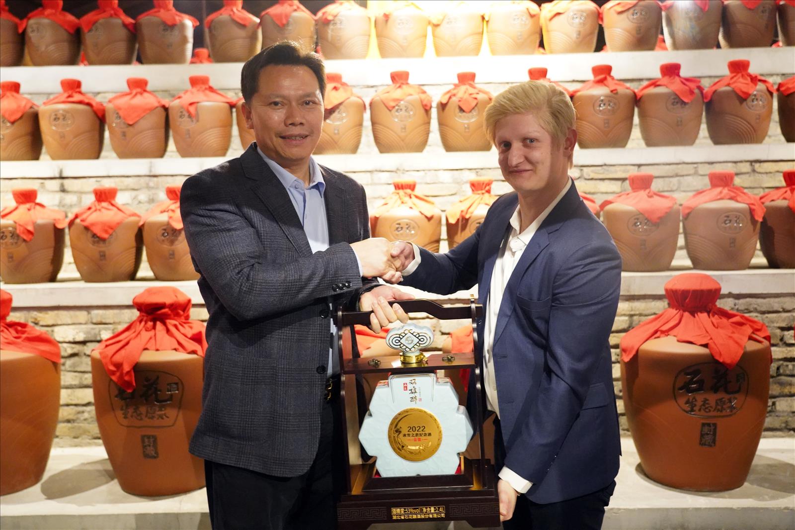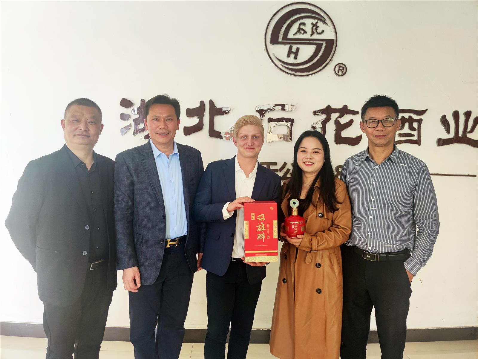 2023年,英國(guó)朋友Joshua Gibbs與襄陽(yáng)女孩MuXi喜結(jié)連理,4月9日,一行人慕名來(lái)到石花雙雄醉,甄選婚宴用酒,受到總經(jīng)理鄭書(shū)軍的熱情接待,團(tuán)隊(duì)一起參觀了石酒產(chǎn)業(yè)園和生態(tài)白酒莊園。