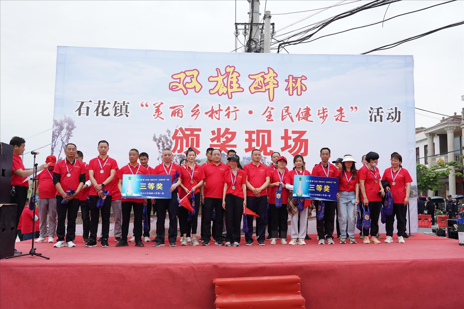 上午10點(diǎn),健步走參賽者陸續(xù)抵達(dá)終點(diǎn),圓滿(mǎn)完成了健步走任務(wù)。石花鎮(zhèn)黨委班子成員為完成健步走的前100名選手頒獎(jiǎng),石花鎮(zhèn)委書(shū)記熊偉、石花雙雄醉銷(xiāo)售總監(jiān)郭春偉為10名一等獎(jiǎng)選手頒發(fā)獎(jiǎng)牌、獎(jiǎng)品。