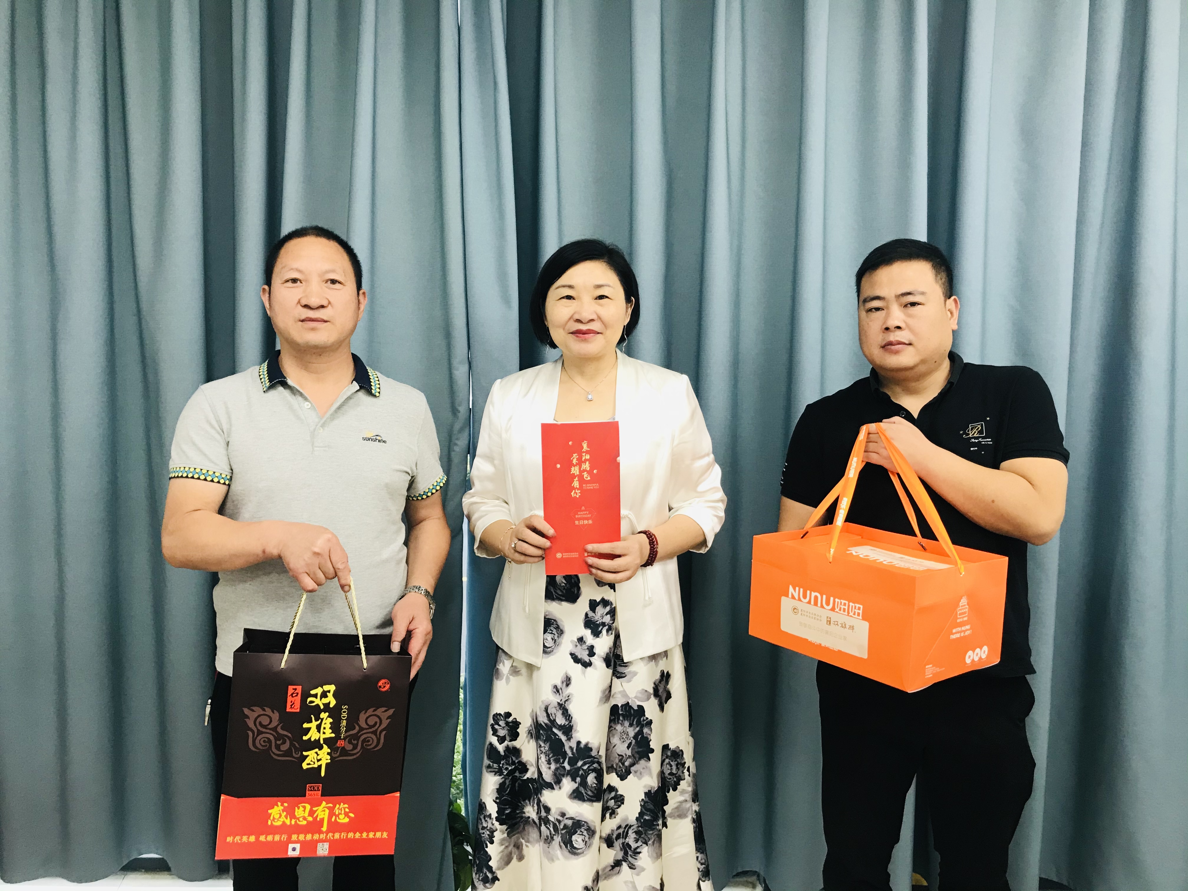 本周,石花酒業(yè)副總經(jīng)理、雙雄醉健康酒業(yè)總經(jīng)理鄭書(shū)軍、雙雄醉大客戶總監(jiān)李愛(ài)軍和襄陽(yáng)企聯(lián)工作人員一起,帶著由襄陽(yáng)市領(lǐng)導(dǎo)徐冰副市長(zhǎng)、市經(jīng)信局楊富杰局長(zhǎng)和市企聯(lián)吳少偉會(huì)長(zhǎng)簽名的《襄陽(yáng)英雄 青春永駐》的賀卡、生日蛋糕以及雙雄醉SOD365億白酒。分別為大力電工襄陽(yáng)股份有限公司副總裁環(huán)??偨?jīng)理胡其寅、漢江城建集團(tuán)有限公司總經(jīng)理助理龔志軍、博拉經(jīng)緯纖維有限公司總經(jīng)理朱永軍、湖北時(shí)瑞達(dá)重型工程機(jī)械有限公司黨委書(shū)記胡艷、綠盾(襄陽(yáng))信息管理有限公司總經(jīng)理張華等過(guò)生日的企業(yè)家朋友送去暖心生日祝福,感謝企業(yè)家朋友們?yōu)橄尻?yáng)經(jīng)濟(jì)發(fā)展作出的卓越貢獻(xiàn)!