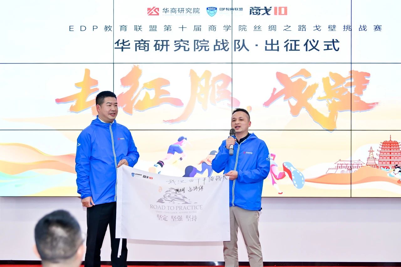 總教練涂濤從總指揮彭斌手中鄭重接過代表著企業(yè)家精神和戈壁精神的戰(zhàn)隊旗幟。高舉隊旗,揮舞吶喊,展示著華商戰(zhàn)隊颯爽英姿和必勝的決心,現(xiàn)場所有人心潮澎湃,熱血沸騰,進軍戈壁的征途從此刻開啟。