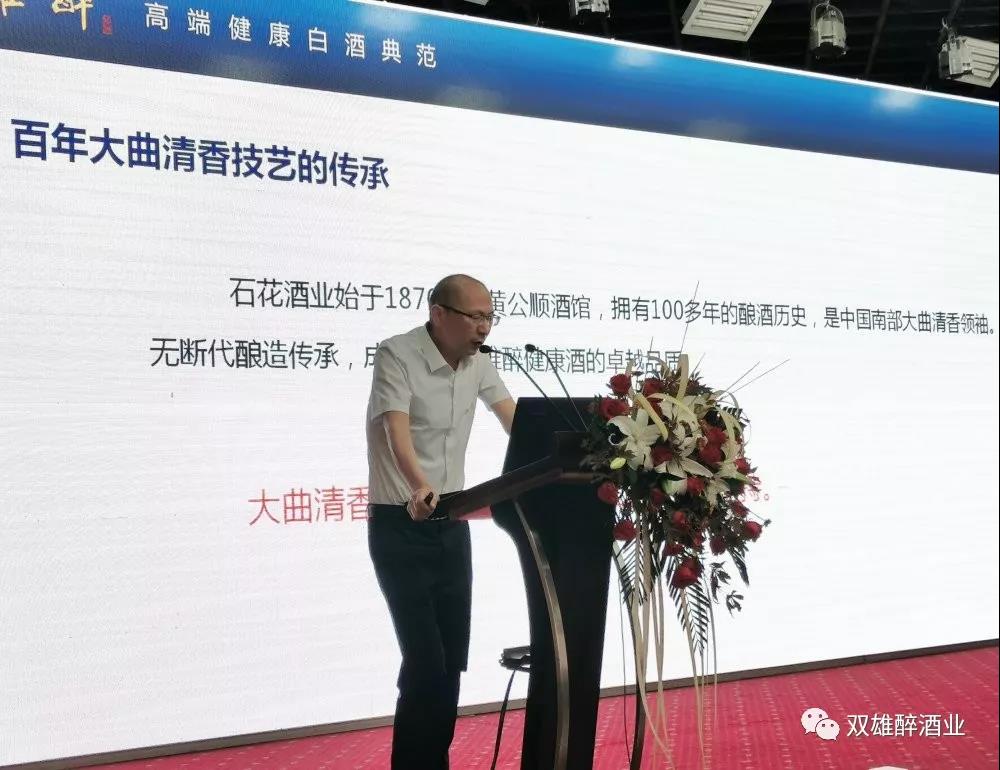 湖北省石花釀酒股份公司董事長、總經(jīng)理曹盧波代表舉辦方致歡迎詞,他指出,在上個世紀(jì)80年代未,湖北石花酒廠在中國著名白酒專家“南陶北高”陶家馳、高景炎的主持下,雙雄醉酒成功研發(fā)并上市;在中國白酒經(jīng)歷了黃金十年后,白酒市場進入了深度調(diào)整期,消費者對健康、時尚白酒的需求日漸顯現(xiàn),“健康白酒”這一白酒細(xì)分市場呈現(xiàn)規(guī)?;鲩L,為此,石花酒業(yè)從2016開始,在原雙雄醉酒釀造技術(shù)基礎(chǔ)上,增加了黑小麥等“藥食兩用”健康原料,秉承地缸發(fā)酵傳統(tǒng)工藝,2018年年底,全新的雙雄醉健康酒研發(fā)成功,兼具傳統(tǒng)白酒風(fēng)味與豐富健康成分雙重特點,更好喝、更健康。