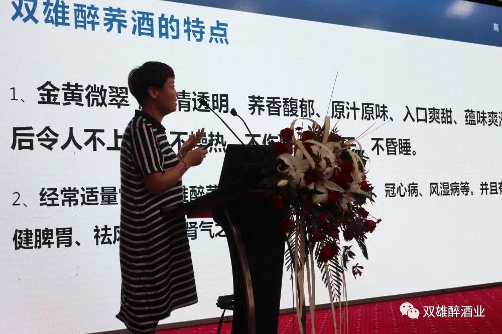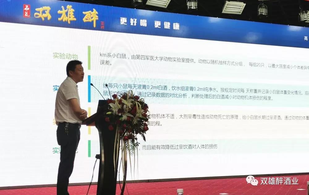 隨后,參與雙雄醉健康酒研發(fā)的兩位專家:中國高級評酒師、連續(xù)三屆白酒國家評委、中國漢江流域生態(tài)白酒研究院專家盧敏和國家級釀酒大師、雙雄醉健康酒研發(fā)專家之一劉中軍,分別就雙雄醉的產(chǎn)品風(fēng)味特色、權(quán)威質(zhì)檢報告,以及雙雄醉研發(fā)過程、獨特釀造工藝進行了講解,特別是盧敏出示的質(zhì)檢報告中,顯示雙雄醉中含有的SOD等關(guān)鍵健康因子含量遠(yuǎn)超市場同類產(chǎn)品,讓與會人員為之振奮。
