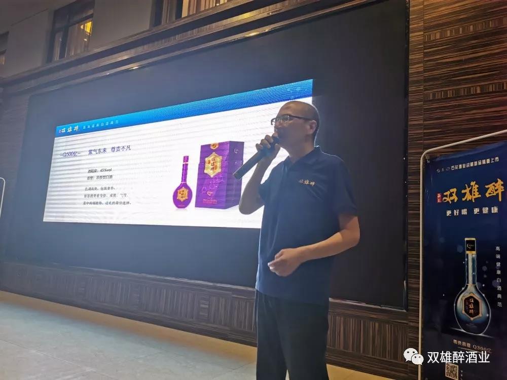銷售總監(jiān)胡華俊總結(jié)了雙雄醉“好的產(chǎn)品、好的名字、好的包裝、好的政策”的“四好”優(yōu)勢,他向與會嘉賓講解了新上市期間合作伙伴的優(yōu)惠政策,他表示,襄陽城區(qū)是石花酒的重要戰(zhàn)略市場,他相信雙雄醉酒不久后一定會在市場上流行。