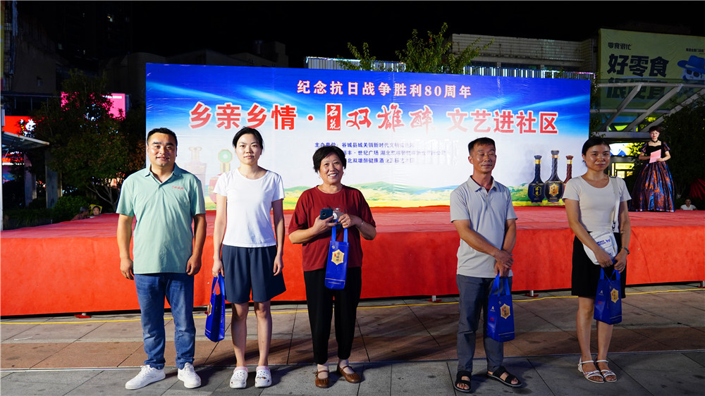 長歌抒盛世,美酒敬山河。8月30日晚,谷城裕豐?世紀(jì)廣場(chǎng)燈火璀璨、人聲鼎沸,鄉(xiāng)親鄉(xiāng)情?石花雙雄醉紀(jì)念抗日戰(zhàn)爭(zhēng)勝利80周年文藝進(jìn)社區(qū)演出在此圓滿舉行,悠揚(yáng)旋律與熱烈掌聲交織,吸引上千名周邊居民駐足觀看,共憶崢嶸歲月、共賞文化盛宴。此次活動(dòng)由谷城縣城關(guān)鎮(zhèn)新時(shí)代文明實(shí)踐所主辦,裕豐?世紀(jì)廣場(chǎng)和石花雙雄醉承辦。